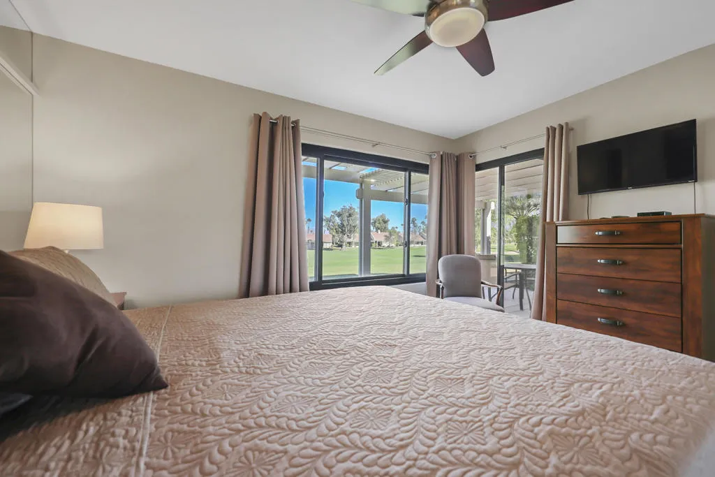 What an incredible price! Located in the heart of Palm Desert, this beautifully updated 2 bedroom, 2 bath condo in the Palm Desert Resorter captures the essence of desert living. Enjoy fabulous east-facing fairway and mountain views from the extended covered patio, perfect for morning coffee or relaxing evenings. The kitchen has been opened up to create a bright, inviting space with new cabinetry and a seamless flow into the living area. Both bathrooms have been tastefully updated, and the home features tile flooring throughout except planked vinyl flooring in the bedrooms for a warm, modern touch. A 2-car garage has been added for convenience and additional storage. Experience resort-style living at its best with golf, tennis, pickleball, bocce ball clubhouse amenities, 20 pools and spas and a vibrant social atmosphere--all within the gates of this sought-after Palm Desert community. Short term rentals are allowed.