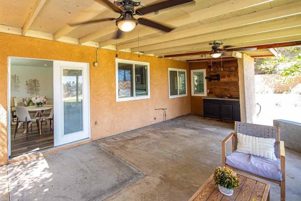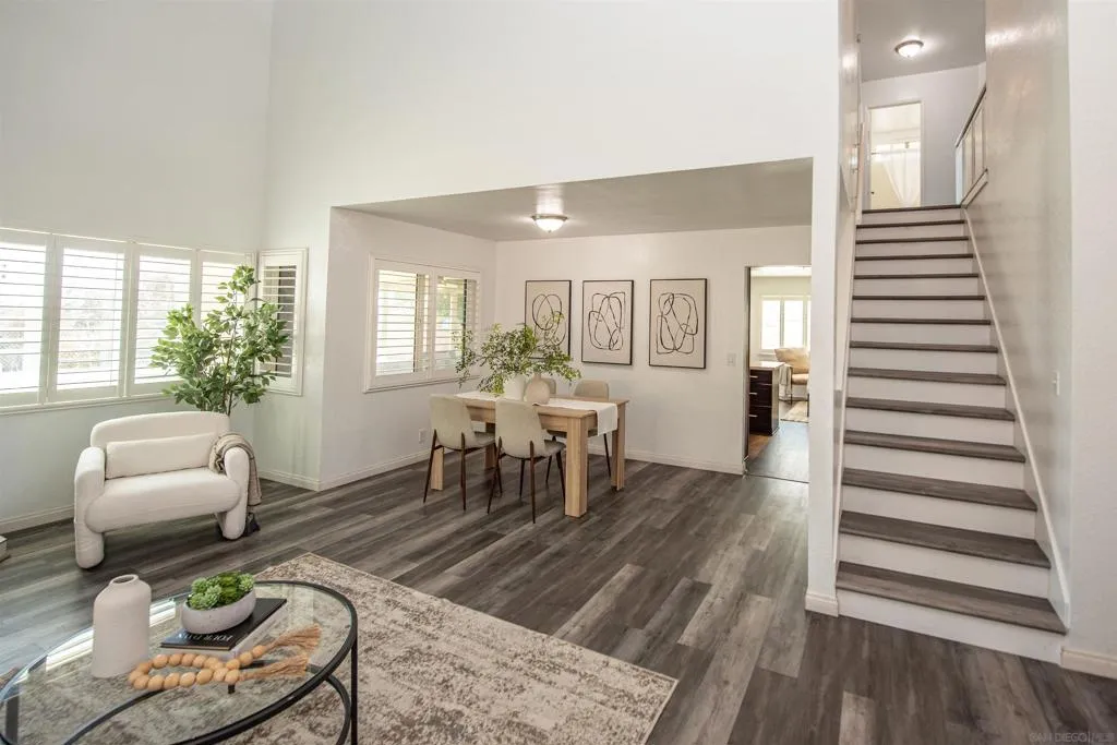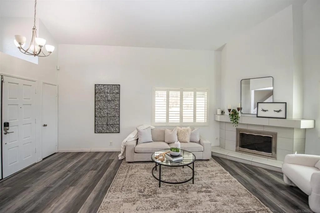 Don’t miss the opportunity to own a beautiful home on a large view lot, ideally situated on a quiet cul-de-sac. The open, spacious floor plan features a living and dining area perfect for formal entertaining. A desirable downstairs bedroom and full bath provide a comfortable space for guests or in-laws. The upgraded kitchen boasts quartz countertops, a center island, rich cabinetry, and stainless steel appliances, and opens to a cozy family room with a breakfast nook. Upstairs, you’ll find three bedrooms and two bathrooms. The primary suite offers panoramic views of the mountains and hills, along with an upgraded bathroom and dual closets. The secondary bedrooms each feature mirrored wardrobes. Enjoy the low-maintenance backyard, complete with a covered patio, stamped concrete, and artificial turf—all set against peaceful views. Take in fireworks from your own front-row seat right at home. Conveniently located with easy access to Highway 54 and just a short drive to Naval Station and downtown San Diego. Additional features include engineered wood flooring and central air conditioning. No HOA or Mello-Roos fees.