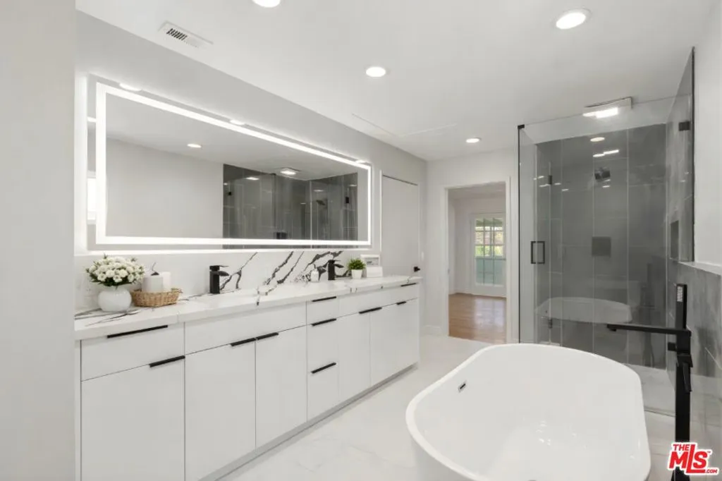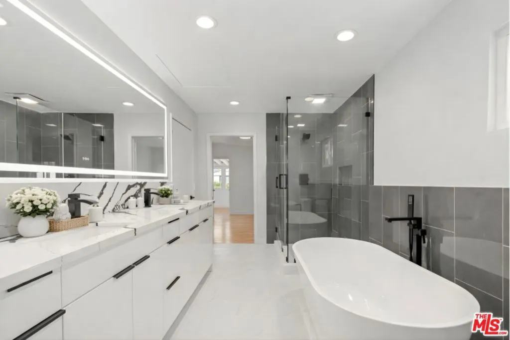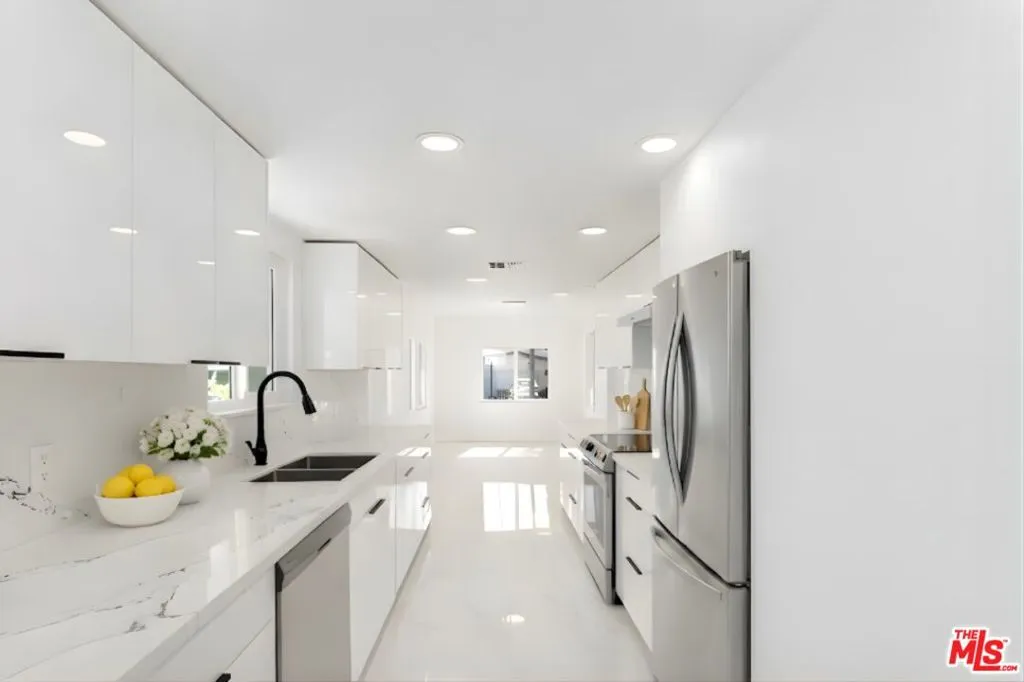 Be the first to live in this newly renovated 5-bedroom, 3-bathroom home on a serene, tree-lined street in prime West LA near Santa Monica. Beautifully updated throughout, this move-in-ready residence features a new roof, new windows, new flooring, a brand-new kitchen, new bathrooms, all new appliances, updated lighting, and fresh modern finishes throughout.Filled with natural light, the home offers spacious living and entertaining areas, including a warm and inviting living room with fireplace, bright dining area, and a stunning white kitchen with sleek cabinetry, stone countertops and backsplash, and all new appliances. The flexible floor plan includes generous bedrooms, a large upstairs loft/lounge, and an airy enclosed sunroom ideal for a sitting room, office, or morning retreat.The expansive upper-level retreat is a standout, complete with a custom walk-in closet and a spa-like bath featuring a double vanity, oversized shower, and soaking tub. French doors, sliding doors, and multiple light-filled spaces create effortless indoor-outdoor flow to the deck and private grassy yard, perfect for relaxing or entertaining. Additional features include in-home laundry and thoughtful updates throughout.Ideally located near UCLA, Century City, Beverly Hills, shopping, dining, and beaches, this turnkey lease combines style, comfort, and convenience.