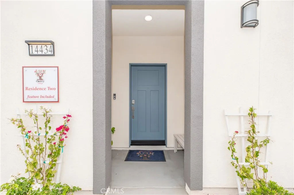 Brand-new construction condominium located in the Cherry Village community. This two-story home offers 3 bedrooms and 2.5 bathrooms, including a convenient downstairs bedroom with a private living area and kitchenette. The open-concept floor plan features a spacious great room and a large kitchen island, ideal for everyday living and entertaining. Interior highlights include quartz countertops throughout, luxury vinyl plank flooring in main living areas, and zebra blinds on all windows. A full suite of Samsung electric appliances—including refrigerator, washer, dryer, dishwasher, stove, and microwave—is included. Enjoy a private backyard patio and a 2-car attached garage. Energy-efficient with owned solar included. Conveniently located near major freeways, shopping, and dining.