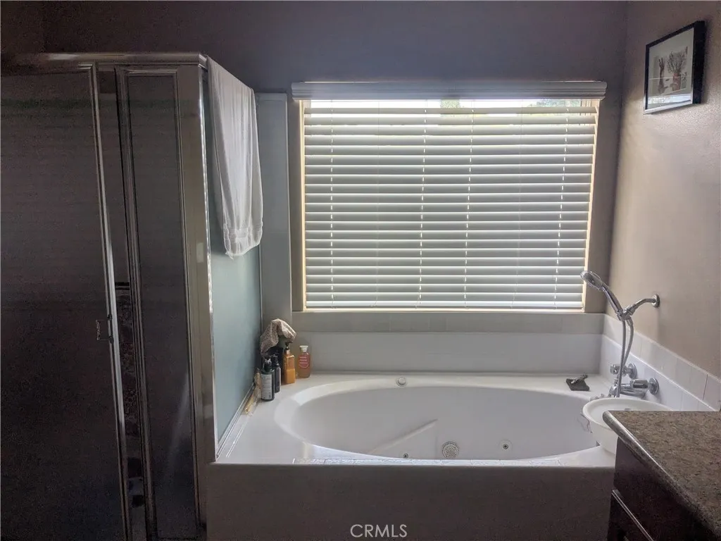 This house is one of 5 homes on a private cul-de-sac lot; high ceiling living room with abundance of natural light thru high windows with two side fireplace that opens up to the family room as well, all thru recessed lights & beautiful laminate floor. A bedroom on 1st floor with full bath convenient for seniors or infants or home office. Kitchen with granite counters, updated cabinets, stainless steel appliances, a 5 burner cook top, a garden window. A double door entry to master bedroom with vaulted ceiling, master bath has a jetted tub for relaxation, separate shower and a walk-in closet. Second floor has 3 additional bedrooms with mirrored wardrobes served by a full bath. Large yard with fruits & vegetable tr RV parking. 2 car garage has direct access with storage & laundry area. Whole house equipped with addional mini split ductless A/Cs units besides central AC & heat. 5 minutes drive or walkable to Anaheim main post office & Anaheim Plaza which has Walmart, Smart & Final, Banks, many restaurants & stores. Freeways 5 & 91 at 10 min. drive.