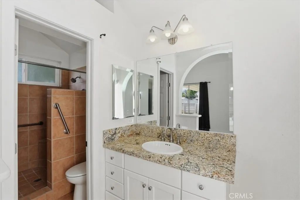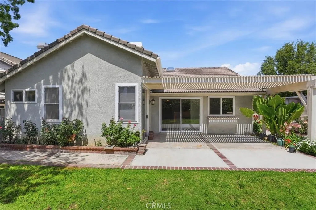 This adorable "picture-perfect", sough-after single-story home, is a rare gem. Tucked away at the end of a charming cul-de-sac offers a rare sense of comfort and privacy. From the moment you arrive, the relaxing covered front porch invites you to sit back and stay a while. Inside, you'll love the "volume ceilings" offering a spacious feeling, ample windows offering plenty of light and consistent tile flooring throughout. A combined formal living and dining area offers plenty of versatility. Step into the cozy family room which is anchored by a classic arched entry and a brick-surround fireplace with a mantle—the ideal spot for quiet evenings. The kitchen is a cook’s delight and as functional as it is charming, featuring "newish" white cabinetry complete with pull-out drawers and a lazy-Susan for effortless organization. You’ll love the sleek stainless appliances and the beautiful granite countertops with a matching full-granite backsplash that makes cleaning a breeze. A sunny adjacent breakfast nook provides the perfect space for your morning coffee The primary suite offers a peaceful sanctuary with volume ceilings and a private slider leading directly to the backyard. The ensuite bath features a granite-topped vanity and a privacy door for the walk-in shower with custom tile surround. Two secondary bedrooms share an updated hallway bathroom, perfect for family or guests. An interior laundry room with updated upper cabinetry leads directly to the two-car garage for easy access. The charm continues outside with a covered backyard patio and an extended brick-trimmed area for soaking up the sun. The home is topped with a durable tile roof and kept cool with central air. Best of all, you can enjoy the Willow Creek community pool and nearby neighborhood park while benefiting from very low HOA dues. This jewel won’t last—come see how comfortable life can be!