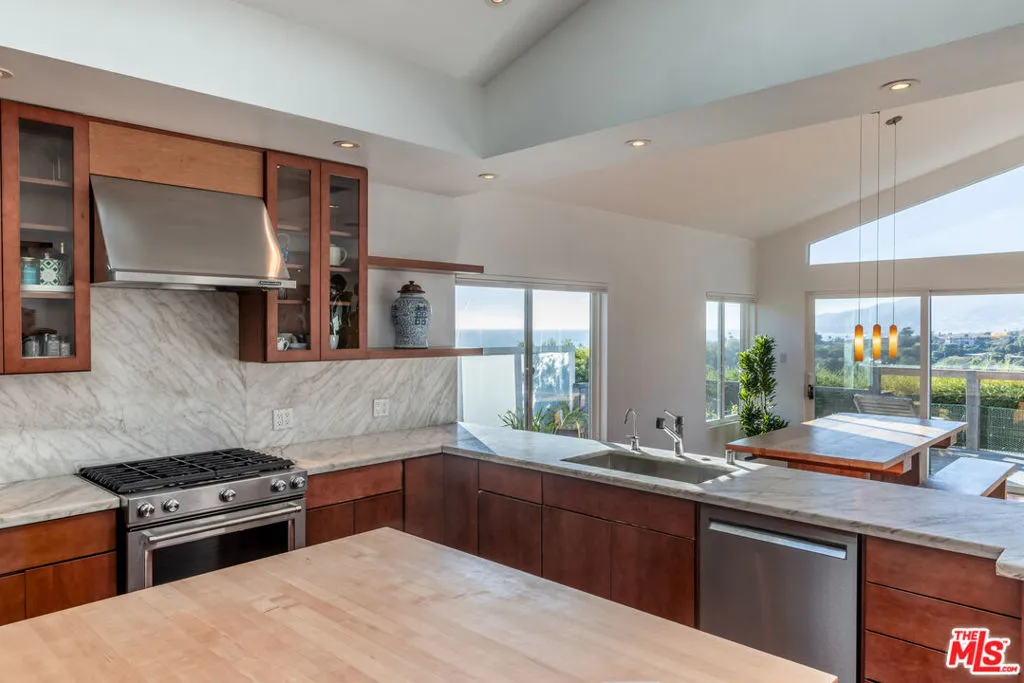 Views Views Views - Ocean, mountain coastline and the dreamiest of Sunset views. Discover your private retreat in the coveted Point Dume Club, where sweeping coastline views and serene mountain panoramas create a breathtaking backdrop for everyday living. This upgraded home offers exceptional privacy and an airy sense of escape. Inside, dramatic vaulted ceilings and an open, sunfilled layout enhance the spaciousness, while IPE hardwood floors flow seamlessly throughout the home and onto the expansive patio deckperfect for taking in the ocean vistas. The kitchen features marble countertops along with a new refrigerator and dishwasher, and the home is thoughtfully outfitted with ecofriendly touches including natural cleaning products, a wholehouse water filtration system, and reverse osmosis for pure drinking water. The Point Dume Club community offers resort style amenities: a clubhouse, pool, heated spa, tennis courts, basketball, and a dog run. Just moments from Zuma and Broad Beach, as well as the Point Dume and Trancas shopping centers, this secure, gated enclave offers both peace of mind and convenience. A rare blend of coastal beauty, luxury, and privacy awaits. Low space rent.