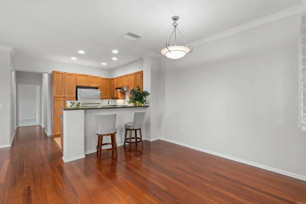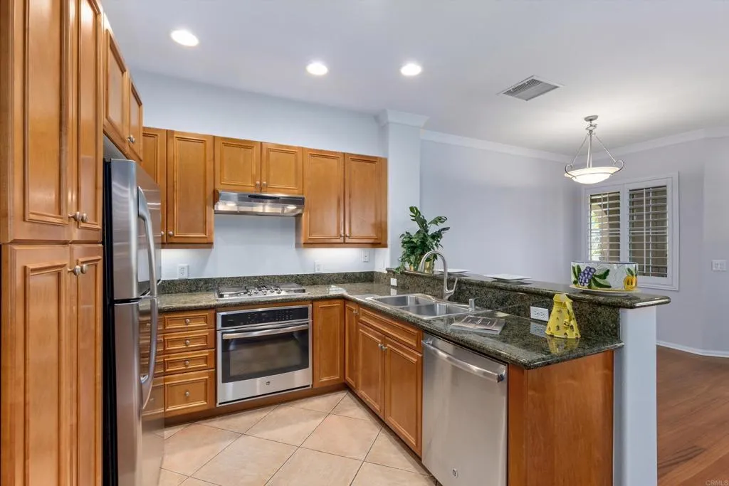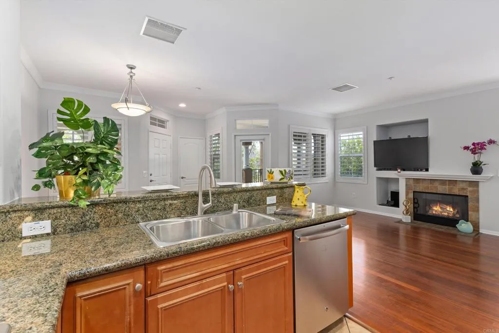 Welcome to this charming single-level condo in the desirable community of Sabre Springs! This bright and comfortable home offers the convenience of one-level living with a private one-car garage, providing both security and additional storage. Step inside to a light-filled open floor plan that creates a warm and inviting atmosphere, perfect for everyday living and entertaining. The living area flows seamlessly into the dining space and kitchen, making the home feel spacious and functional. Large windows bring in natural light and highlight the peaceful surroundings. Enjoy the comfort and convenience of easy indoor-outdoor living, ideal for relaxing after a long day. The attached garage adds valuable parking and storage space, while the well-maintained community offers a quiet and welcoming environment. Located in the heart of Sabre Springs, this home is close to shopping, dining, parks, and major freeways, making commuting and daily errands effortless.