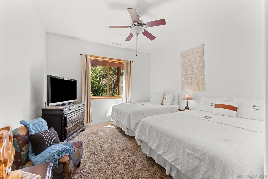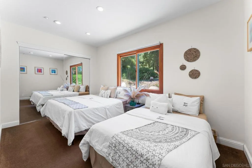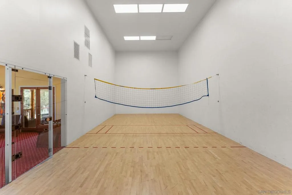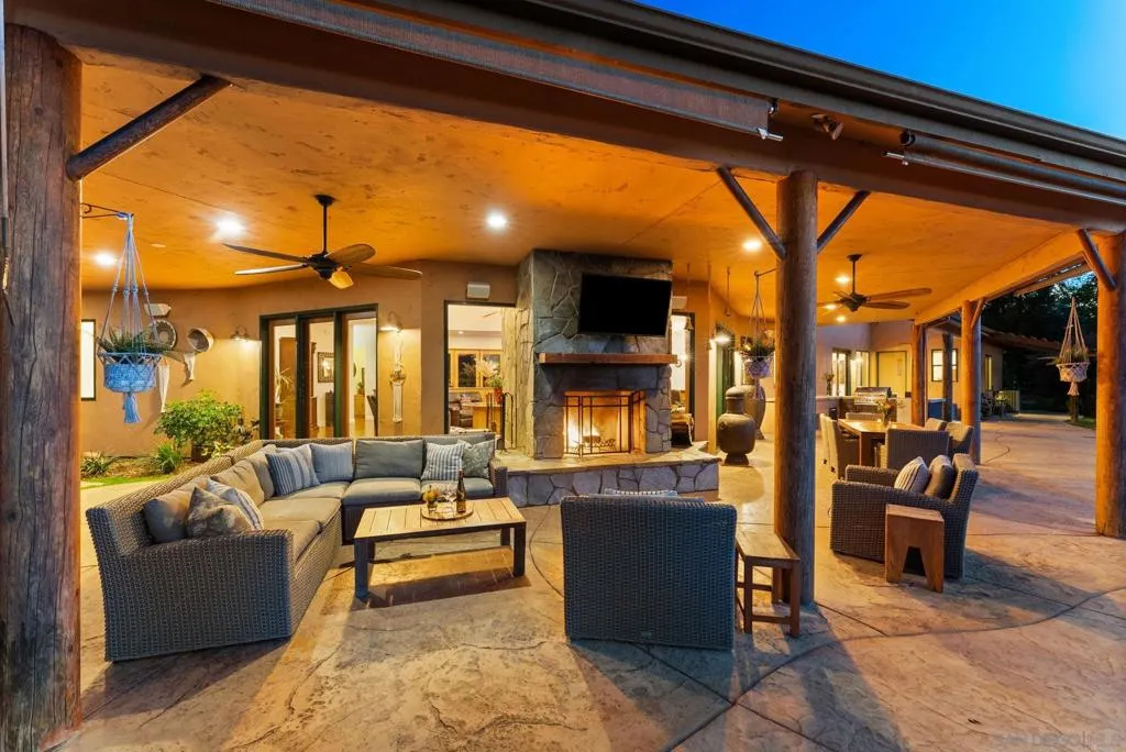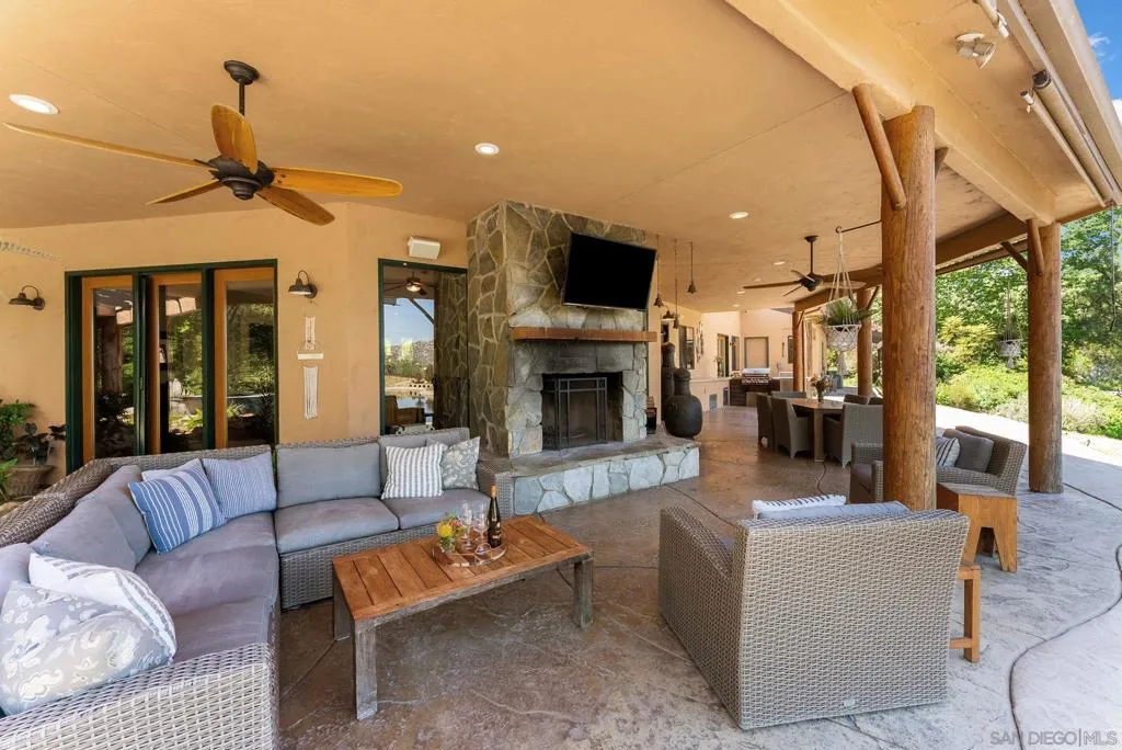 Welcome to Casa Lago, a rare private lakefront estate spanning 51+ acres across two legal parcels in one of Fallbrook’s most scenic settings. The main parcel encompasses approximately 19 acres and features a 5,891 sq. ft. single-level lodge-style residence with 6 bedrooms and 5.5 bathrooms, designed to capture sweeping mountain and lake views. The approximately two-acre stocked lake—expanded and fully lined with over $200,000 in improvements—serves as a striking centerpiece. Inside, the home offers a grand great room with soaring beamed ceilings and walls of glass, a chef-caliber kitchen, formal dining, and quality finishes throughout. The primary suite includes a fireplace and tranquil views, while en-suite guest rooms provide comfort and privacy. Wrap-around verandas and a resort-style pool and spa create seamless indoor-outdoor living. The grounds include a detached recreation building with a full-size racquetball court, pickleball court, shuffleboard, pool table, and game lounge. Additional features include leased solar, a flower-growing area, private go-kart track with hangar, and space suitable for equestrian use. The second parcel consists of approximately 32 acres with underground utilities and panoramic views, offering potential for a variety of uses, subject to buyer verification. Conveniently located approximately six miles to I-15, providing access to San Diego, Los Angeles and multiple regional airports. Casa Lago presents a rare opportunity to own a private lakefront estate in San Diego County.