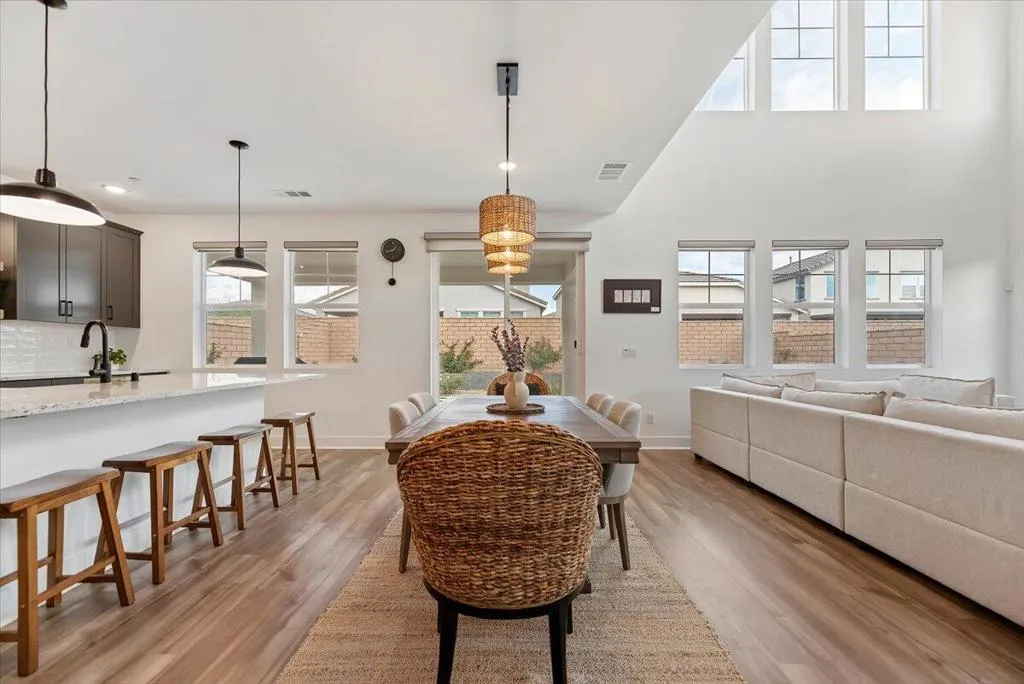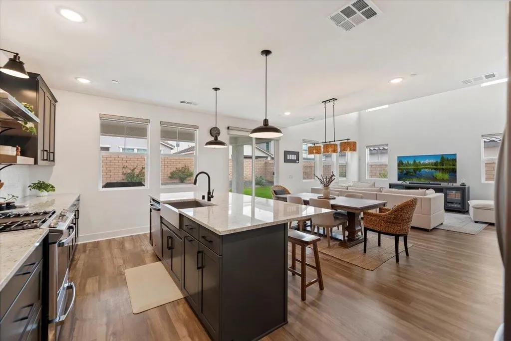 Located in the gated community of Aguila at Terra Lago in North Indio, this upgraded newer-build home offers modern desert living with a flexible floor plan, energy-efficient features, and a peaceful setting on a quiet interior street.The layout includes a private office with French doors and a closet, conveniently located next to a full bathroom with shower, making it ideal as a guest bedroom, private workspace, or multi-generational living space. The kitchen features Shaker-style cabinetry, granite countertops, stainless steel appliances, and upgraded flooring throughout the main living areas. Custom window treatments include motorized solar shades for tall windows that never require recharging.Energy-efficient upgrades include fully paid solar panels with bird proofing and a tankless water heater for added convenience and long-term savings. The professionally landscaped backyard offers a covered patio, concrete hardscaping, lush grass, fruit trees, and proper drainage, creating an inviting outdoor space for relaxing or entertaining.Upstairs, a spacious loft provides flexible living space ideal for a media room, playroom, or secondary lounge. The primary suite features dual walk-in closets, dual vanities, a spa-style bath, and beautiful views of the Indio Hills from the primary bathroom window.A move-in-ready home offering modern comfort, efficiency, and flexible living in one of North Indio's desirable gated communities.