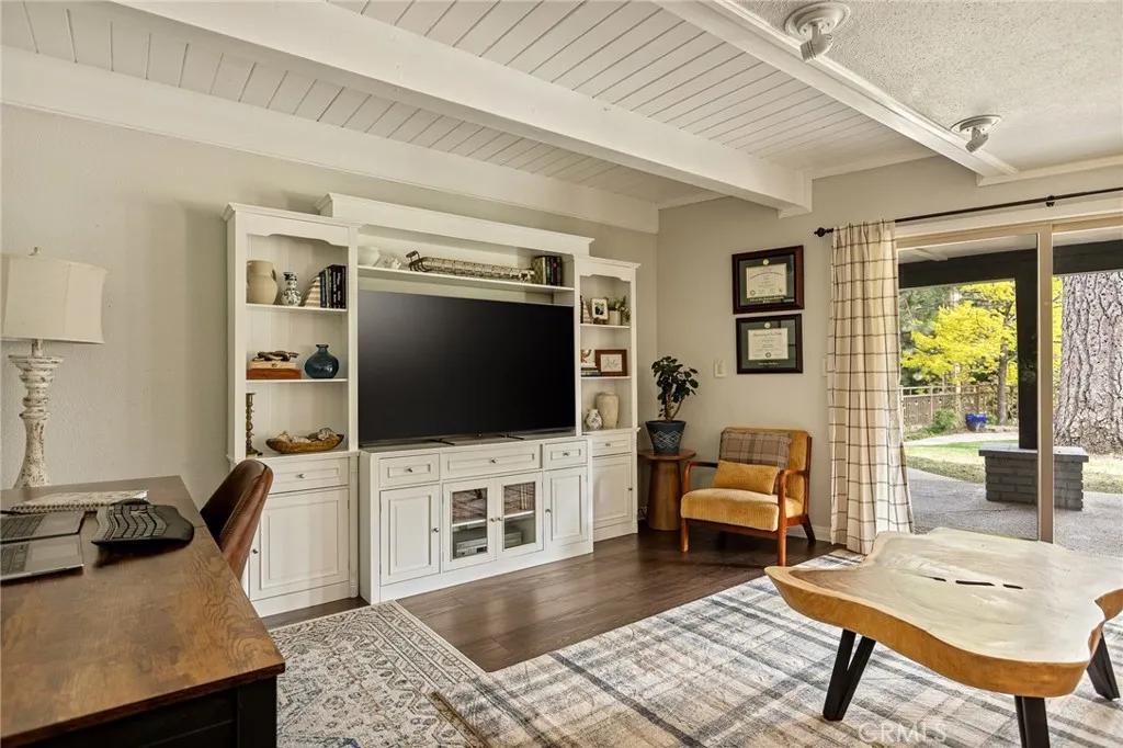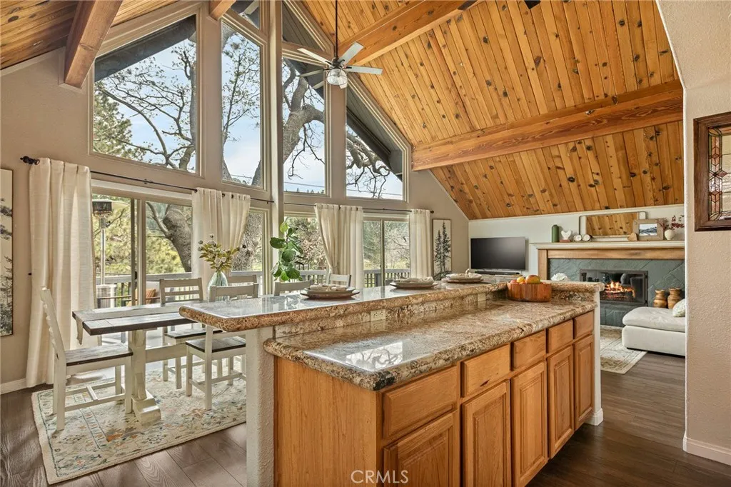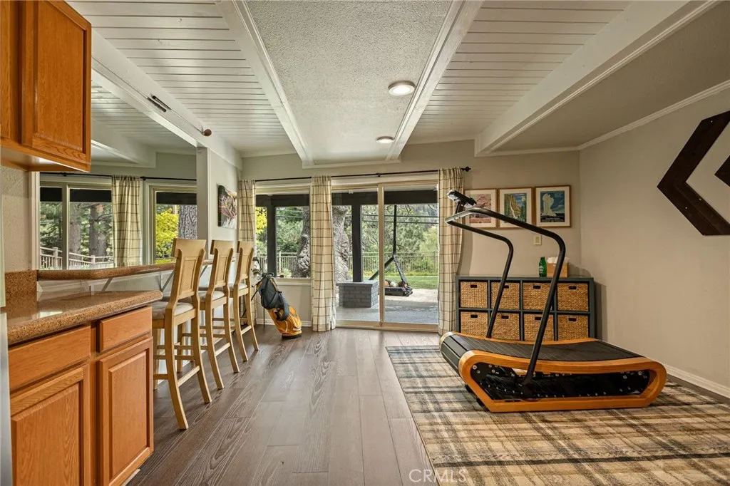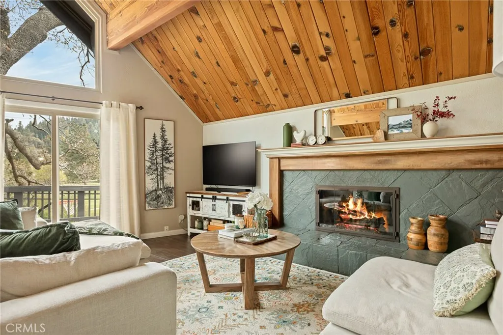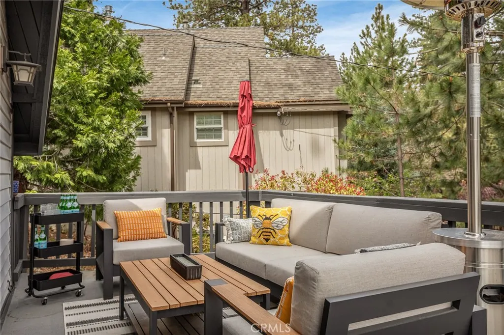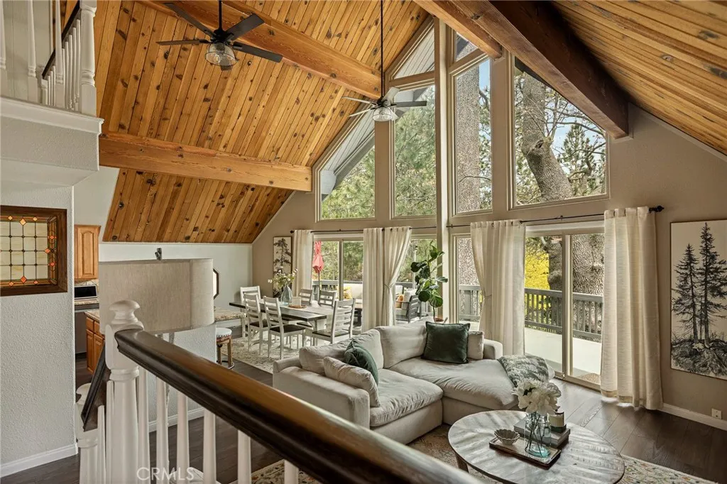 Set on a beautiful, usable lot with direct golf course proximity, this inviting Lake Arrowhead retreat captures the essence of mountain living with a rare blend of indoor comfort and exceptional outdoor space. From the moment you arrive, the home welcomes you with charm and functionality, offering multiple areas to relax, entertain, and enjoy the peaceful surroundings. The expansive rear deck is a true highlight, featuring several seating areas, a fire table, and room to host gatherings year-round, all while overlooking mature trees and the nearby fairway. Below, the flat, landscaped yard is equally impressive—perfect for games, entertaining, or simply enjoying the outdoors, complete with paver patio, basketball area, and plenty of space rarely found in mountain properties. Inside, the home offers a warm and comfortable layout designed for both everyday living and weekend escapes. The main living area is filled with natural light and opens seamlessly to the outdoors, creating an easy indoor-outdoor flow. The kitchen connects to a casual breakfast bar, ideal for gathering, while the adjacent living and flex spaces provide versatility for lounging, entertaining, or working from home. A dedicated office area adds functionality for remote work, while additional bonus space has been thoughtfully utilized as a fitness and wellness area, complete with room for equipment and even a sauna, offering a private retreat experience within the home. The bathrooms feature tasteful updates with stone tile finishes and clean, well-maintained vanities, blending comfort with a timeless mountain aesthetic. A convenient indoor laundry area adds to the home’s practicality. Throughout, the home has been well cared for and thoughtfully arranged to maximize both space and livability. With its combination of usable land, multiple outdoor entertaining areas, golf course setting, and flexible interior spaces, this property stands out as an ideal full-time residence, second home, or investment opportunity. Whether you're hosting friends on the deck, enjoying a quiet morning overlooking the trees, or taking advantage of the nearby golf course lifestyle, this home delivers the relaxed, elevated Lake Arrowhead experience buyers are looking for.