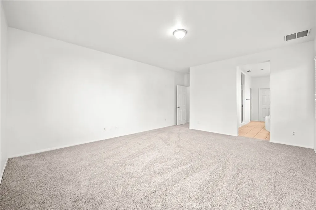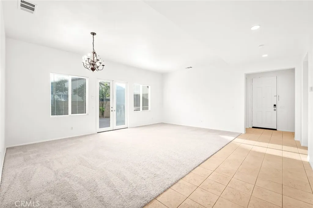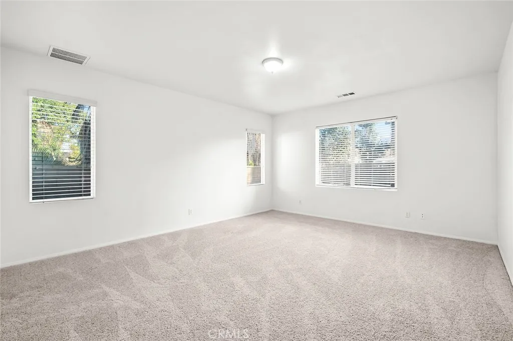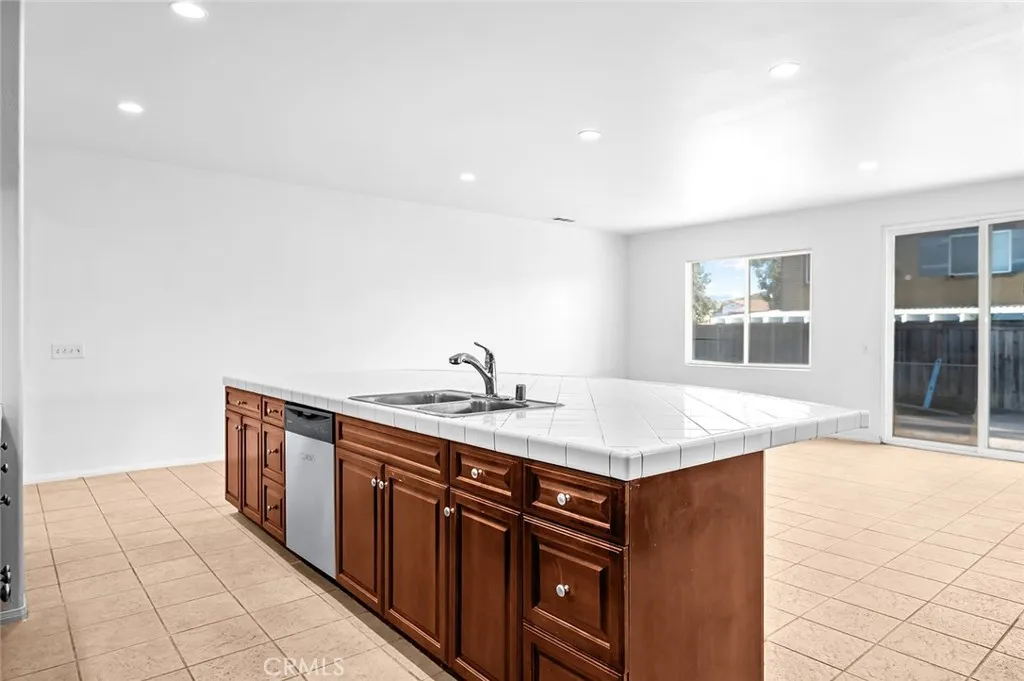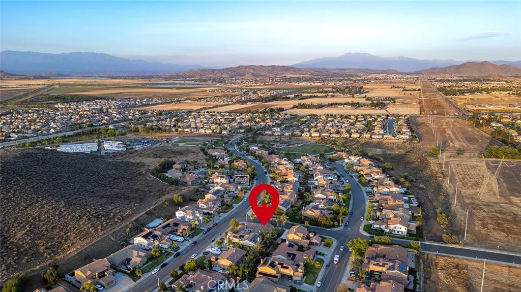 Single-story home on a corner lot with strong curb appeal, mature palms, and a bright, open floor plan. Soaring ceilings and oversized windows bring abundant natural light into the main living areas. The combined living and dining space flows directly into the kitchen, which features a large center island, ample cabinetry, and generous prep and counter space. The layout works for both entertaining and everyday functionality. Sliding doors open to a private backyard with a built-in fire pit and plenty of room to relax or host. The primary suite offers a spacious layout, dual vanities, and a soaking tub set beneath a sunlit window. Additional bedrooms are generously sized and flexible enough for a home office, workout room, or guest space. Located in Perris with easy access to local parks, outdoor recreation, nearby lakes, and commuter routes. A well-kept single-story with strong livability and outdoor appeal. Call your Realtor today to schedule a tour and make an offer!