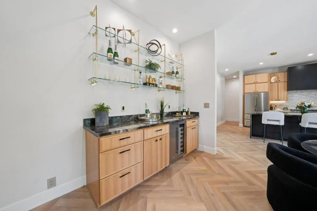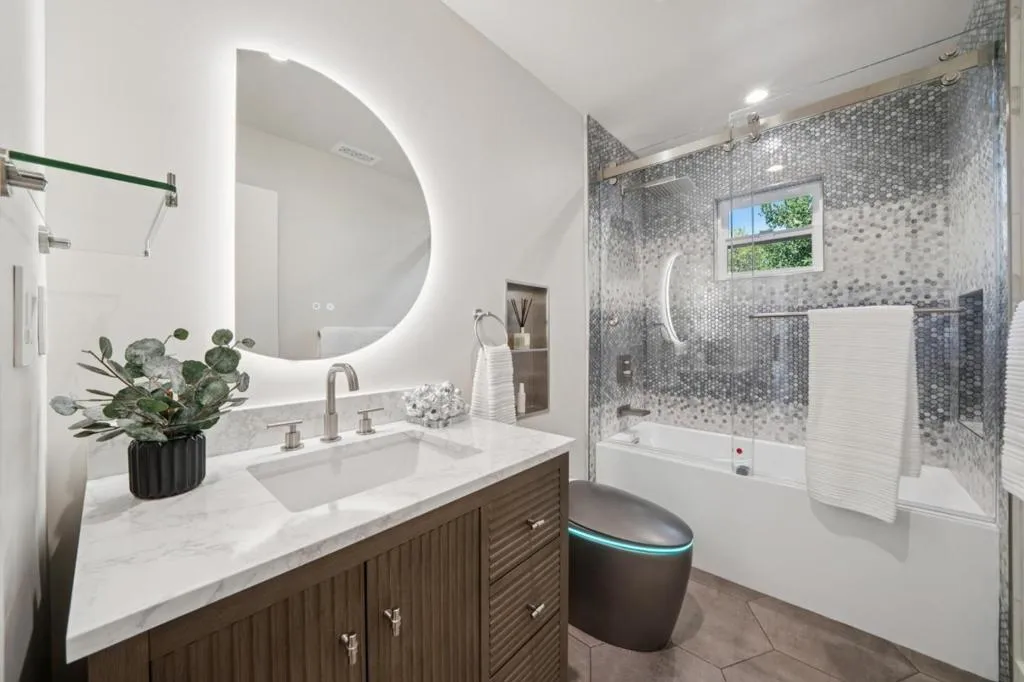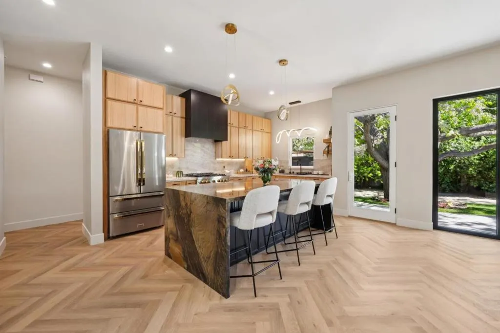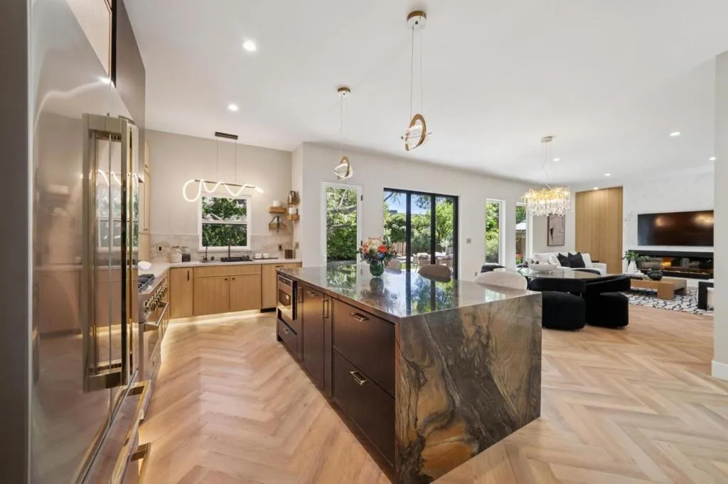 Expanded and rebuilt in the past year, and ideally situated on a cul-de-sac in Mountain View, this stunning home incorporates designer detailing with flair and panache! The living space, with 3 bedrooms and 2.5 baths, offers one an elegant setting for entertaining and daily living. The Great Room opens to the sun-drenched rear patio through a folding glass door - ideal for indoor/outdoor entertainment. The kitchen area allows the most discriminating chef ample workspace, built-in tools and high-end appliances. The center island incorporates more storage with a comfortable breakfast bar. The main room includes a horizontal fireplace with installed television (internet wiring in place). There is room for more formal dining accented with a chandelier. The drink caddy in enclosed in the bar cabinetry. The bath for the primary suite has rear yard access, features double sinks and flows to the dressing room with built-in cabinets and closet. Two additional bedrooms are served by a hall bath with a lighted mirror, unique commode and shower/tub combo. The laundry room includes a stacked washer/dryer and sufficient cabinets. The two car garage has an epoxy floor, automatic overhead door and coded combo panel for entry. The is a designer's dream to enjoy!
