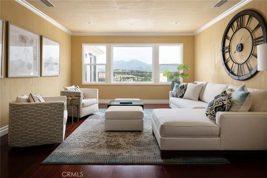 Welcome to 9 Rocky Mountain, where privacy, elegance, and everyday comfort come together in one of Orange County’s most exclusive settings. Located within the exclusive Oak Knoll–Summit enclave, a private gated community within the prestigious guard-gated Coto de Caza community, this home is designed for those who value security, serenity, and elevated living. A grand yet inviting entry sets the tone, with soaring ceilings and a handcrafted wrought-iron staircase that immediately draws you in. Thoughtfully designed for both comfort and entertaining, the home offers five en suite bedrooms, including a main level suite, along with a powder room featuring distinctive finishes for guests. The formal living room feels both elegant and welcoming, highlighted by coffered ceilings and marble flooring. A private office with custom built-ins offers an inspiring work from home space. Throughout the home, detailed wainscoting and architectural accents add depth, character, and a sense of craftsmanship. Designed with both style and functionality in mind, the kitchen features custom cabinetry, dual oversized refrigerators, and quality finishes, well-suited for both everyday living and effortless entertaining. The dedicated wine storage is perfect for both collectors and hosting. Upstairs, a spacious bonus room offers flexibility as a secondary living room, office, or home gym. The primary suite serves as a peaceful retreat, complete with its own sitting area and picturesque mountain views that evolve with the seasons, lush and green in the spring and summer, and beautifully snow dusted in the winter. The remaining four bedrooms are all generously sized en suites, each offering its own private bath and custom closet, creating comfort and privacy throughout the upper level. Blending thoughtful design, comfort, and an elevated sense of privacy, this home presents a rare opportunity to experience quiet luxury in one of Orange County’s most sought after communities.