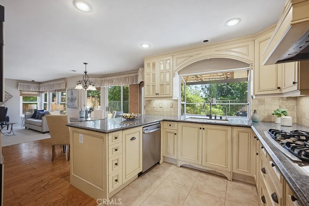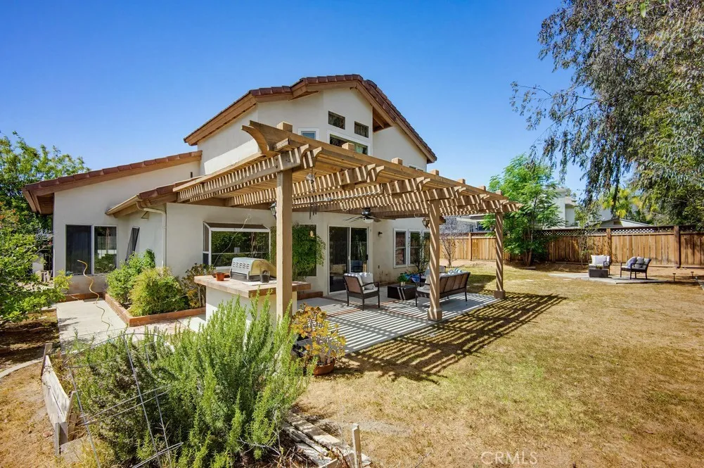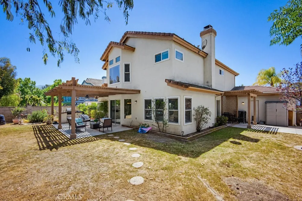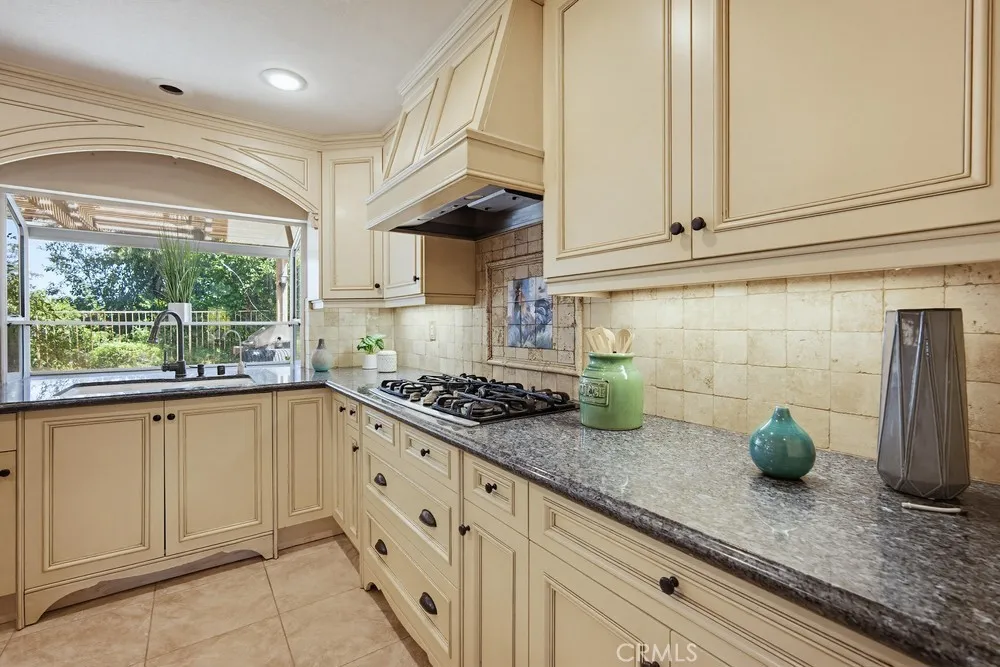 Welcome to this beautifully upgraded home situated on an oversized, pool-sized lot with no rear neighbors, with exceptional privacy and endless potential. Free from HOA and Mello-Roos, this residence delivers both value and luxury at every turn. Step inside through the raised entry with elegant wood flooring and discover a home that has been thoughtfully enhanced from top to bottom. The stunning gourmet kitchen is a true showpiece, boasting granite countertops with a custom backsplash, glazed custom cabinetry with pull-out shelves and Lazy-Susan corner cabinets, a spacious walk-in pantry, and a five-burner gourmet cooktop beneath a custom hood. Built-in stainless steel appliances along with a charming custom garden window that fills the space with natural light. The main floor also features a convenient bedroom with slider access to a private patio, as well as a beautifully appointed full bath with marble countertops and a seamless glass shower enclosure. An inside laundry room adds everyday practicality. Upstairs, the spacious primary suite offers a generous walk-in closet and a highly upgraded en-suite bath with custom cabinetry, travertine shower, separate soaking tub, dual sinks, and custom lighting throughout. The inviting family room showcases a mantled fireplace, bay windows, and surround sound wiring — all opening through a slider to one of three covered patios, perfect for year-round outdoor entertaining. The landscaped grounds provide a serene retreat with complete privacy. Additional highlights include a three-car garage with added storage. Conveniently located near restaurants, shopping areas and entertainment venues.