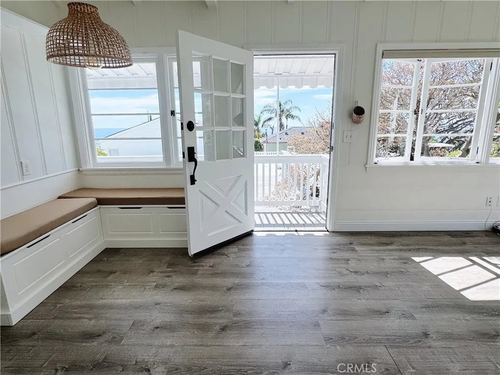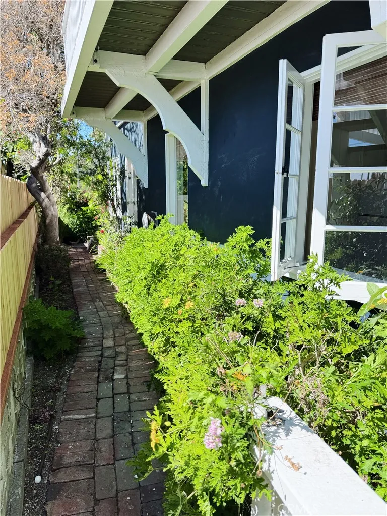 Charming South Laguna cottage with private guest studio, ocean views, and abundant parking. Tucked into a quiet south Laguna neighborhood just a short stroll to thousand steps or table rock beach, this light filled coastal cottage offers the rare combination of flexibility, indoor outdoor living, and walkability. This unique property lives like a single family home, with two separate living spaces- ideal for multi-generational living, a home office suite, a creative studio, or private guest quarters. The upper level features a sun-drenched two bedroom, one bath home, with vaulted open- beam ceilings, and abundant windows that capture ocean and tree top views. The remodeled kitchen includes stainless steel appliances, hot water tap, ocean views, and beautiful natural light. The living room and dining room nook feels airy and expansive, and both bedrooms enjoy peaceful outlooks. The downstairs has a private entrance along a garden pathway. The lower level studio opens directly onto the large backyard patio.
