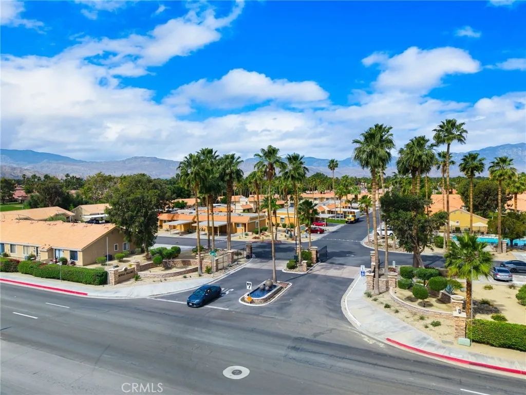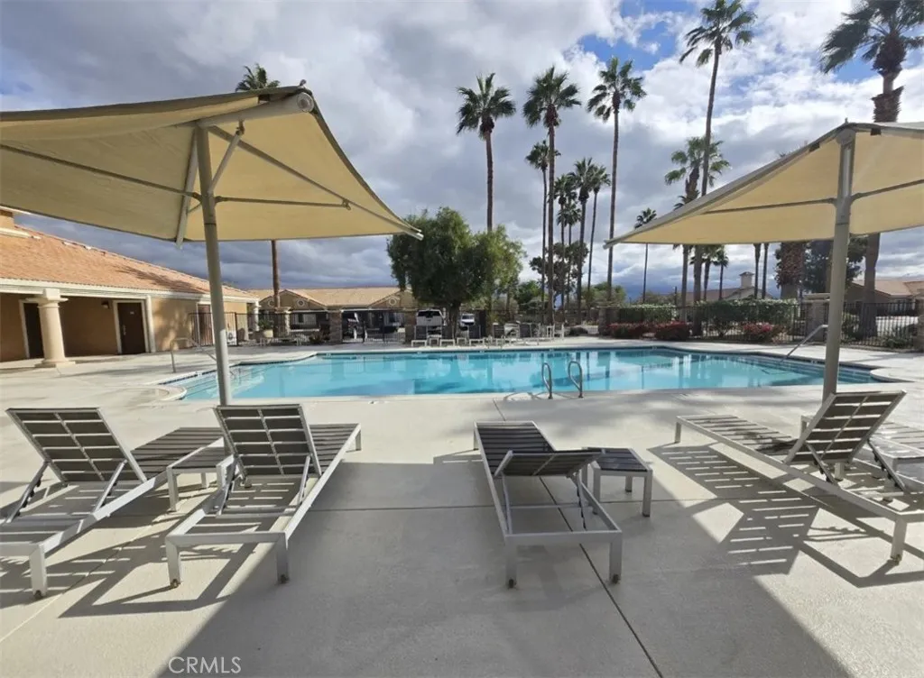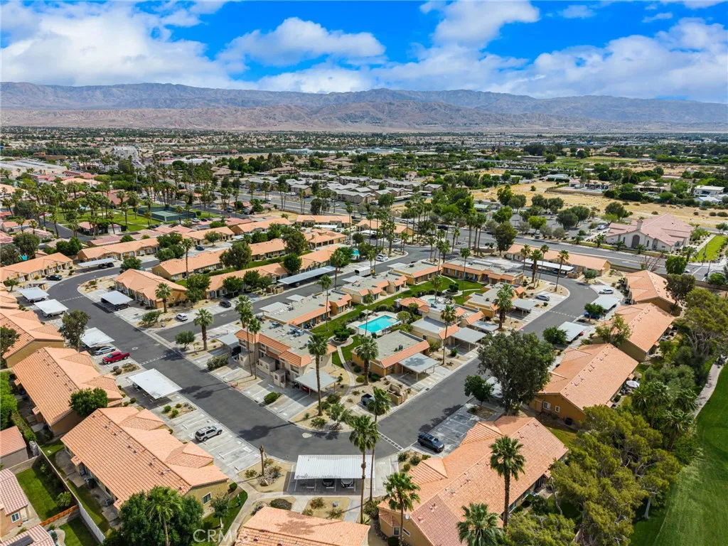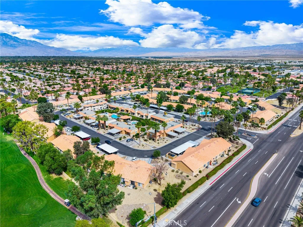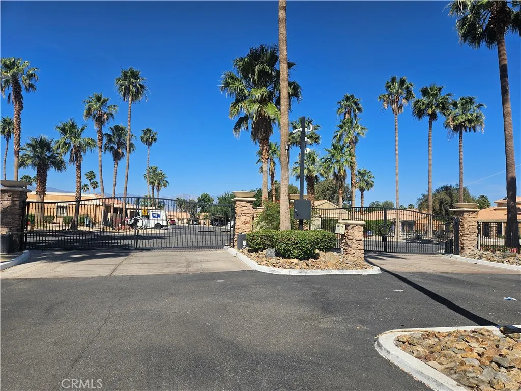 Wonderful opportunity to enjoy comfortable desert living in a prime location. Beautiful Palm Desert Condo For Sale. Located in the Highly Desirable Royal Palms Gated Community! 40900 Breezy Pass Road, Unit D, Palm Desert CA 92211 is a single-story condominium featuring spacious 2 Bedrooms, 2 Bathrooms, with 925 square feet of living space and a golf course & mountain view from the spacious backyard. It features a bright and airy Open Floor Plan with Vaulted Cathedral Ceilings. The kitchen includes a gas oven/stove, microwave, dishwasher, granite countertops and breakfast bar with storage. The Primary Bedroom has high-beamed ceilings, a walk-in closet with private ensuite bathroom and shower. Convenient stackable washer & dryer in primary bathroom closet. Unwind in the primary bedroom suite and private back patio with golf course and mountain views - your own tranquil retreat with no rear neighbors. There is also a Guest Bedroom and Guest Bathroom with golf course and mountain views. Property boasts large grassy front, back and side yards with golf course and mountain views. This home also includes 2 covered carport assigned parking spaces and plenty of guest parking across the street. The HOA includes 2 Sparkling Pools for year-round enjoyment, Relaxing Spa, Media Room, Barbeque Area, Clubhouse with Kitchen, Fitness Center, Recreation Room, Courtyard, Covered Parking, Controlled-Access Gated Community, On-Site Maintenance, and On-Site Management. Home is centrally located near shopping, dining, and entertainment. HOA dues are $418/month. Imagine waking up in your peaceful desert oasis! Seize this opportunity!