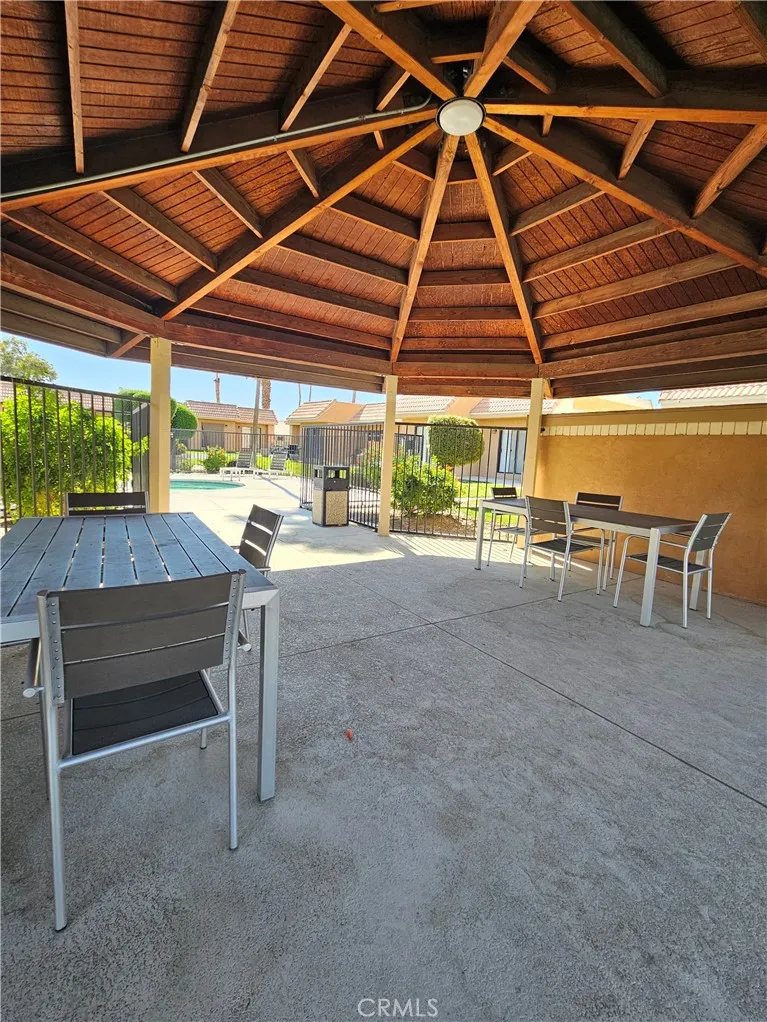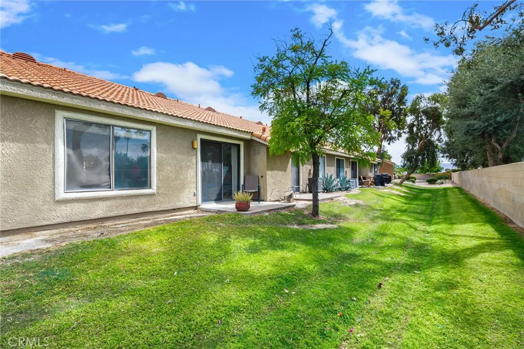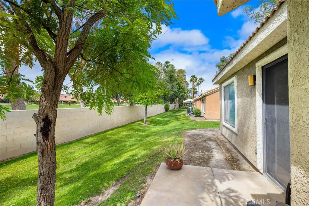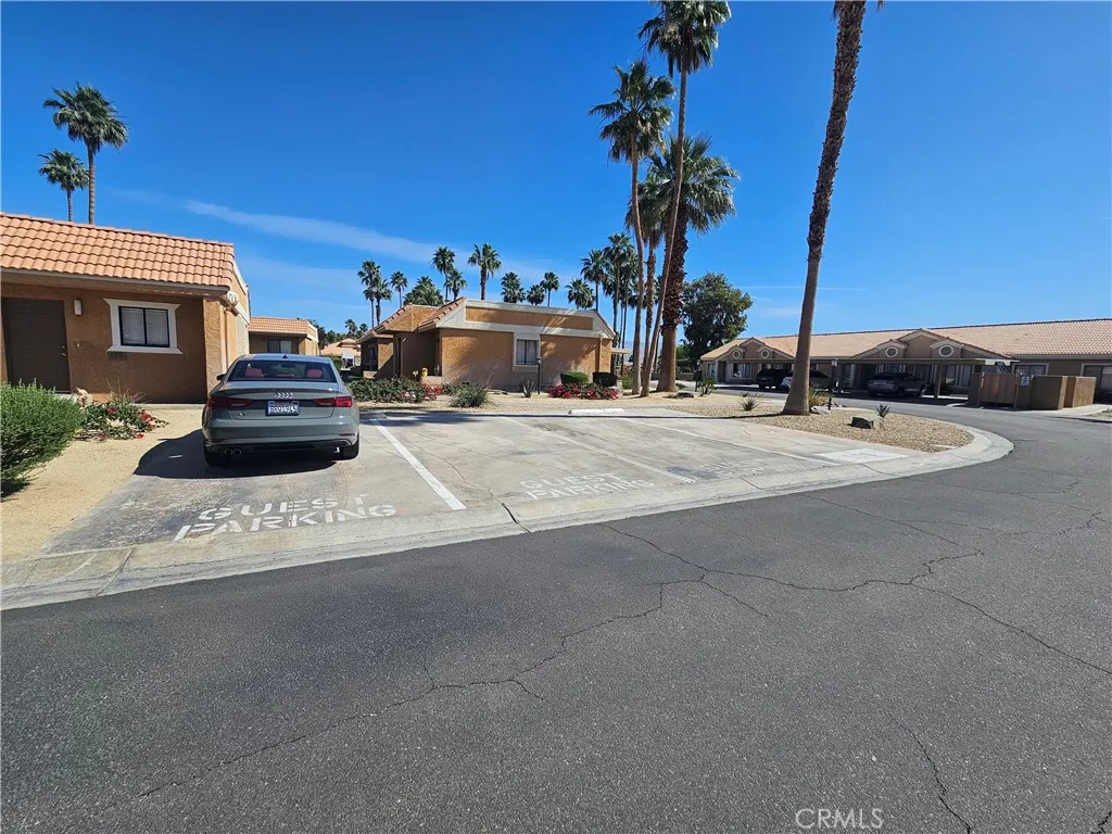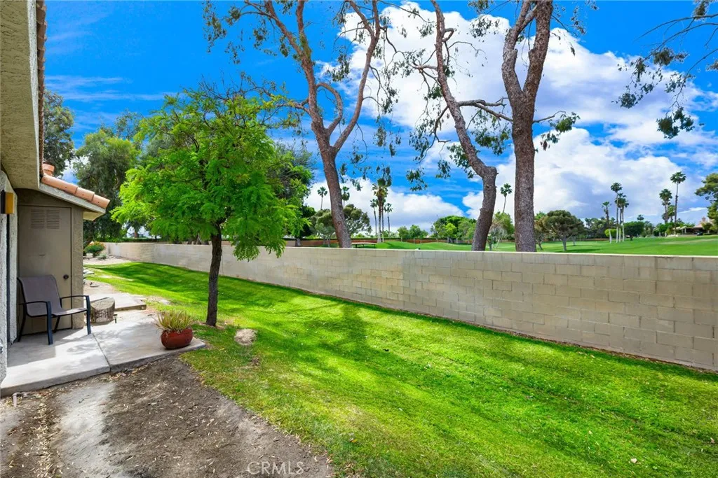 Wonderful opportunity to enjoy comfortable desert living in a prime location. Beautiful Palm Desert Condo For Sale. Located in the Highly Desirable Royal Palms Gated Community! 40900 Breezy Pass Road, Unit D, Palm Desert CA 92211 is a single-story condominium featuring spacious 2 Bedrooms, 2 Bathrooms, with 925 square feet of living space and a golf course & mountain view from the spacious backyard. It features a bright and airy Open Floor Plan with Vaulted Cathedral Ceilings. The kitchen includes a gas oven/stove, microwave, dishwasher, granite countertops and breakfast bar with storage. The Primary Bedroom has high-beamed ceilings, a walk-in closet with private ensuite bathroom and shower. Convenient stackable washer & dryer in primary bathroom closet. Unwind in the primary bedroom suite and private back patio with golf course and mountain views - your own tranquil retreat with no rear neighbors. There is also a Guest Bedroom and Guest Bathroom with golf course and mountain views. Property boasts large grassy front, back and side yards with golf course and mountain views. This home also includes 2 covered carport assigned parking spaces and plenty of guest parking across the street. The HOA includes 2 Sparkling Pools for year-round enjoyment, Relaxing Spa, Media Room, Barbeque Area, Clubhouse with Kitchen, Fitness Center, Recreation Room, Courtyard, Covered Parking, Controlled-Access Gated Community, On-Site Maintenance, and On-Site Management. Home is centrally located near shopping, dining, and entertainment. HOA dues are $418/month. Imagine waking up in your peaceful desert oasis! Seize this opportunity!