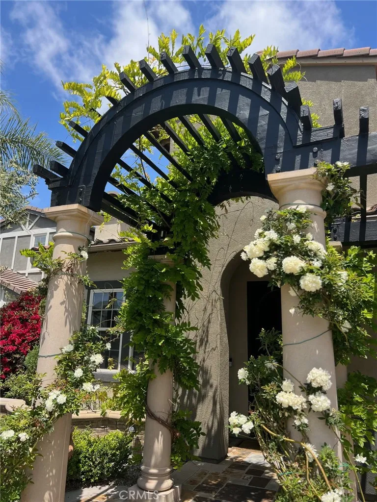 *** IMMACULATE 5-BEDROOM RESORT-STYLE HOME WITH HIGH-END FINISHES IN PRIME FOUNTAIN VALLEY *** - Discover this stunning turn-key residence offering approximately 3,909 square feet of refined living space in one of Fountain Valley's most desirable neighborhoods. You will be immediately taken by the elegant curb appeal of the front garden, which is enhanced by a dramatic, custom iron arched trellis and beautiful stone walk framing the grand entry. Built in 2008 and meticulously maintained, this home showcases high-end decorator finishes throughout, including extensive designer moldings, travertine flooring, granite countertop, and custom lighting. - Boasting 5 spacious bedroom and 3.5 bathrooms, the floor plan includes a convenient downstairs bedroom with private bath, a large bonus room, and an elegant master suite complete with a cozy fireplace, his-and-her walk-in closets, spa-like jet tub, and separate shower. The gourmet kitchen features a 17-foot central island, premium stainless-steel appliances, a giant custom-designed uber-pantry, separate beverage center, and a large dining area -- perfect for entertainers and big families. - Step outside through a Custom, Solid mahogany NanaWall Folding Glass Door System, imported directly from Germany and enjoy seamless indoor/outdoor living that opens to a private resort-style backyard. Relax in the sparkling pool and jacuzzi or enjoy the serene courtyard featuring a beautiful flowing fountain surrounded by professionally maintained landscaping and lush gardens. - Additionally premium features include central heating and air conditioning, a Tesla/EV charger, and owned solar panels that significantly reduce electricity costs. When was the last time you found a home this beautiful with absolutely no HOA or Millo-Roo's fees? This energy-efficient, modern residence offers the perfect blend of luxury, convenience, and California lifestyle - Located on a quiet cul-de-sac with easy access to parks, to-rated schools, and nearby beaches, this exceptional home represents a rare opportunity in Fountain Valley.