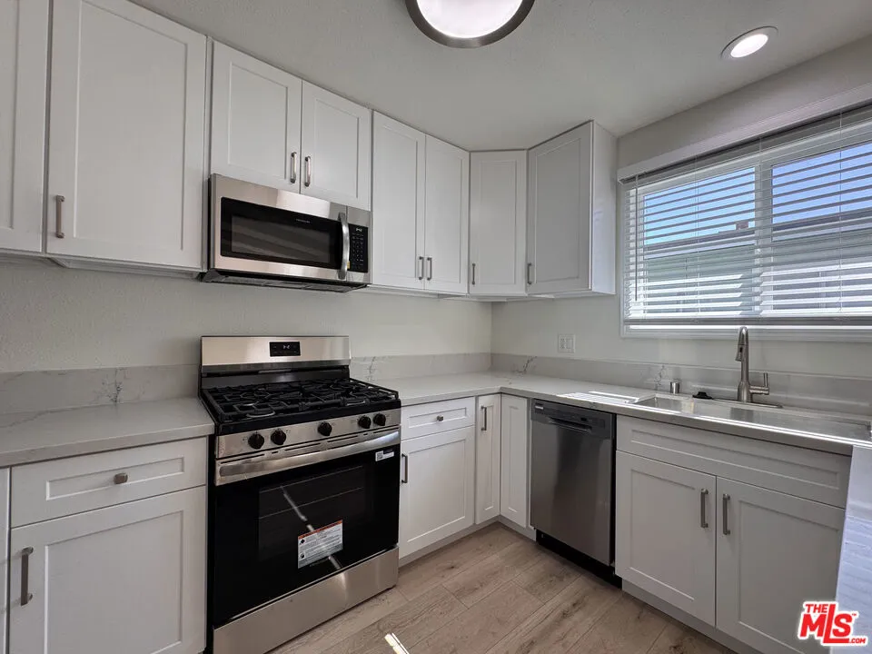 Welcome to this beautiful newly renovated 1-bedroom retreat in prime Mar Vista, offering a refined take on modern living. Approximately 600 square feet are elevated by vaulted ceilings and an open-concept layout, creating a bright and airy space. The kitchen features quartz countertops, custom cabinetry, and clean, contemporary finishes, all anchored by laminate hardwood flooring throughout. Designed for both comfort and ease, the home includes a private patio, in-unit smart washer and dryer, and a single-car garage with additional tandem parking. Ideally situated just moments from some of Mar Vista's most sought-after dining and coffee, including Lodge Bread, Hatchet Hall, Hasi, Wall Street Pizza, and neighborhood favorites like Menotti's and 310 Coffee. This home is the perfect blend of modern design and effortless Westside living.