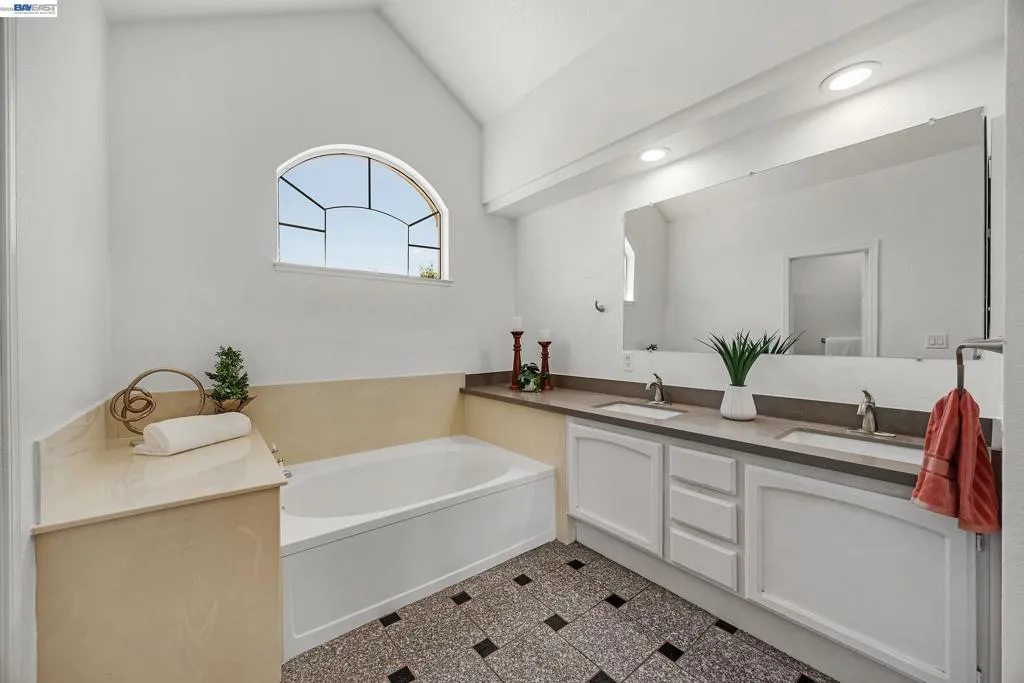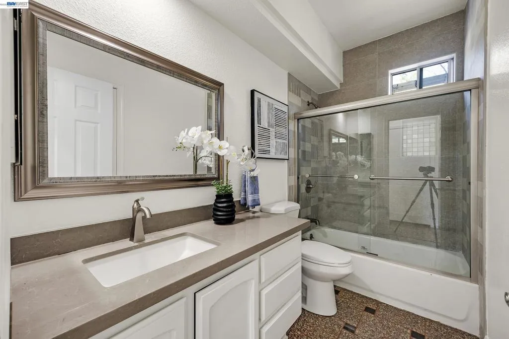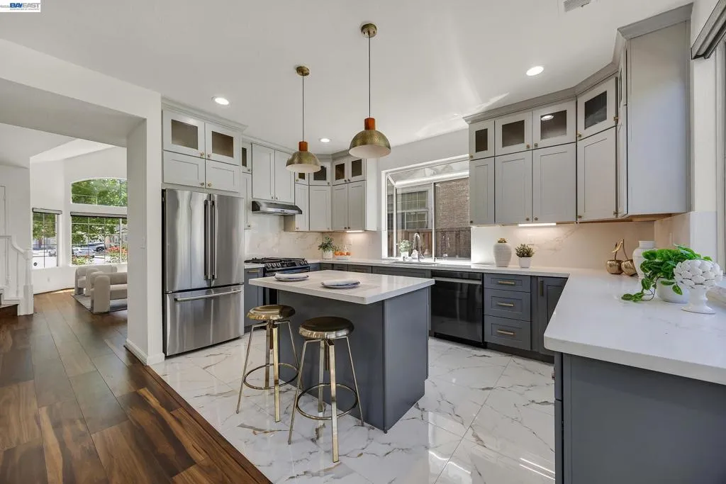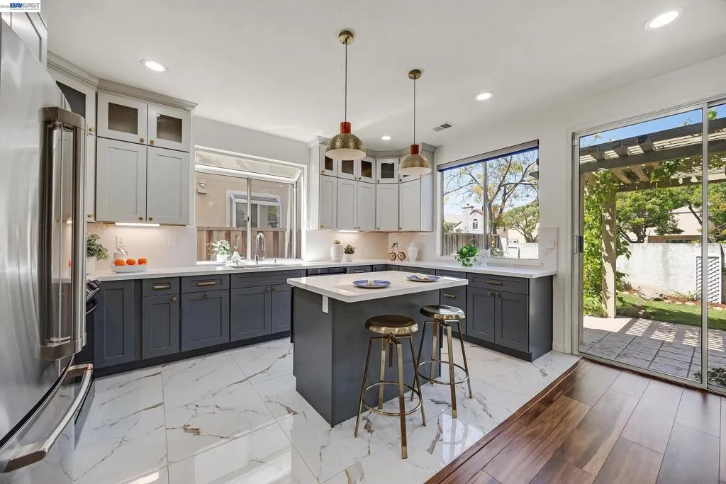 Exquisitely renovated and thoughtfully reimagined, this elegant Milpitas residence blends timeless sophistication with modern comfort in a sought-after neighborhood. Showcasing refined interiors, a light-filled open floor plan, and beautifully curated living spaces, this exceptional home offers an elevated lifestyle designed for both everyday living and effortless entertaining. A dramatic cathedral ceiling entry makes a striking first impression, introducing grand formal living and dining spaces enhanced by soaring ceilings and expansive windows. The airy layout creates a seamless flow while balancing sophistication and warmth. At the heart of the home, the newly renovated gourmet kitchen is a true showpiece, featuring stainless steel appliances, abundant cabinetry, generous prep space, designer backsplash, and a sunlit casual dining area. The kitchen opens seamlessly to the inviting family room, centered around a cozy fireplace, creating the perfect setting for relaxed evenings and memorable gatherings. A highly desirable main-level bedroom with direct access to a full bath offers exceptional flexibility for guests, multigenerational living, or a private office. Upstairs, a spacious landing with built-in cabinetry adds both architectural interest and practical storage. Two generously sized secondary bedrooms are filled with natural light, while the luxurious primary suite serves as a serene retreat with a walk-in closet and spa-inspired ensuite bath featuring dual vanities and a soaking tub. The outdoor setting extends the home’s appeal with a beautifully designed backyard retreat featuring a paved patio beneath a charming pergola, ideal for alfresco dining and entertaining. Mature fruit trees and established landscaping create a private, tranquil garden setting. Extensive renovations and thoughtful upgrades throughout enhance the home with modern finishes and turnkey appeal. Every detail reflects quality, comfort, and style. Ideally located near top-rated schools, parks, shopping, dining, and major commute routes, this exceptional residence offers the perfect blend of luxury, functionality, and convenience. A rare opportunity to own a beautifully updated home where elegant design, versatile living, and an outstanding Milpitas location come together.