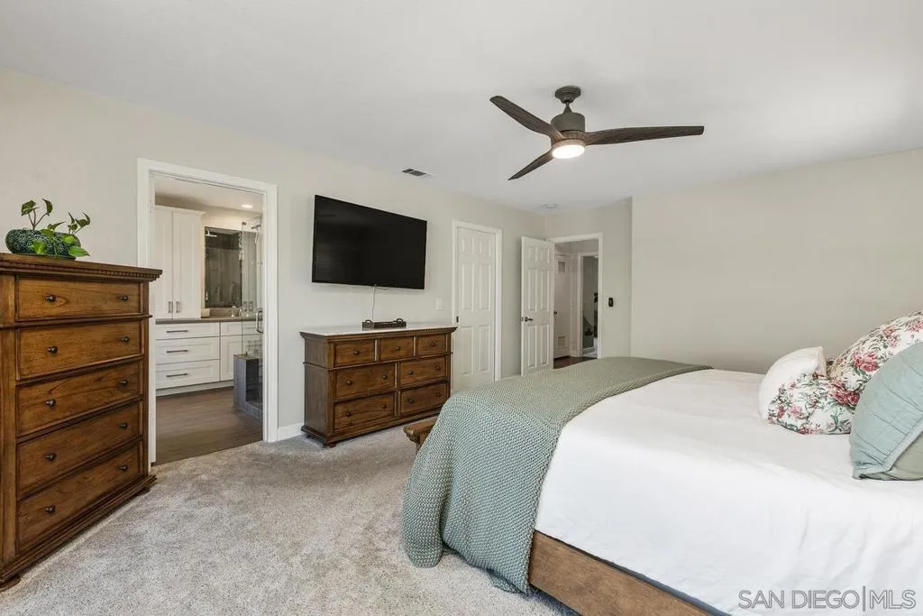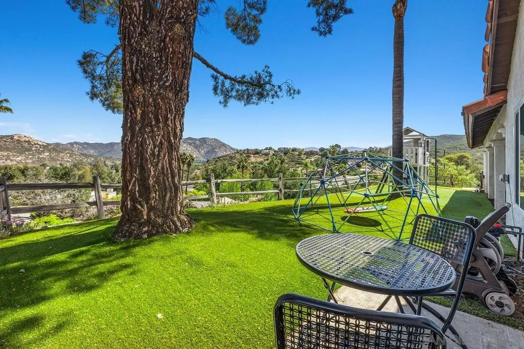 Perched in the scenic hills of Ramona’s desirable SDCEA community, this home offers privacy, versatility, and stunning mountain views. Elevated above the street, this home enjoys a peaceful, retreat-like setting while remaining close to everyday conveniences. The main home features a beautifully remodeled kitchen with shaker-style white cabinetry, quartzite countertops, and stainless steel appliances—perfect for both daily living and entertaining. The inviting living space is highlighted by a stately white-washed brick fireplace, adding warmth and timeless character. The spacious primary suite serves as a true retreat, complete with a designer bathroom featuring dual sinks, custom tile work, and large professionally designed walk-in closets. A standout feature is the approximately 400 sq ft granny flat above the garage, offering incredible flexibility for guests, multigenerational living, or a private work-from-home setup. With the potential to add a kitchenette, this space could easily become a fully rentable unit. The grounds are a true highlight, showcasing a diverse collection of producing and soon-to-produce fruit trees, creating your own private garden oasis. Outdoor living is elevated with a charming loggia, perfect for relaxing or hosting memorable outdoor movie nights . Fully owned solar system provides substantial long-term energy savings and even generated income last year, helping offset or eliminate typical SDG&E utility costs. The expansive grounds are thoughtfully landscaped and feature an impressive variety of mature and developing fruit trees, including peaches, plums, lemons, blood oranges, navel oranges, pummelo, cherries, apples, guava, dragon fruit, and grapevines—offering year-round enjoyment and seasonal harvests. Outdoor living is enhanced by multiple usable spaces, including a covered loggia ideal for dining, entertaining, or relaxing evenings. The sellers have created a unique outdoor movie setup here and plan to leave the entertainment system, making it a turnkey experience for gatherings. The granny flat above the garage (~400 sq ft) adds exceptional versatility, currently used as dual home offices but easily adaptable for guests, rental income, or multigenerational living. With the option to add a kitchenette, it can function as a fully independent (and potentially a rental) unit. Located within the San Diego Country Estates (SDCEA), residents enjoy access to a wide range of amenities and a strong sense of community. The neighborhood includes two elementary schools, a convenient local coffee shop, and nearby everyday essentials. Outdoor enthusiasts will appreciate the proximity to scenic hiking and riding trails, while wine lovers can explore the many local wineries just minutes away. Just a short drive brings you to the charming historic town of Julian, known for its seasonal apple picking, fresh pies, and year-round small-town appeal. This location offers the perfect balance of rural tranquility, community amenities, and easy access to recreation, dining, and local attractions.