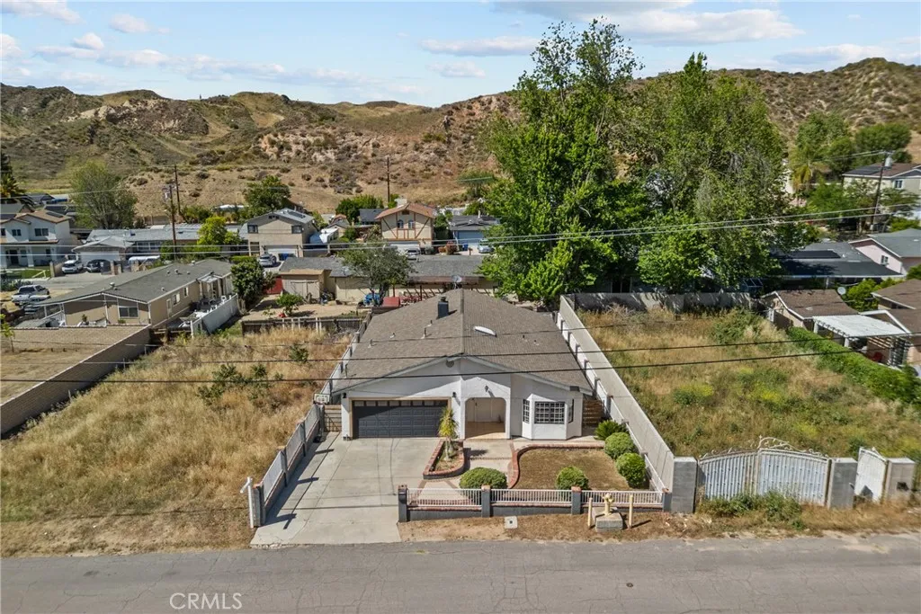 Drive through the scenic countryside to this beautiful Val Verde retreat. Nestled on a quiet street with vacant lots on either side, this home offers exceptional privacy and a peaceful, open setting. Built in 2002, the home showcases numerous updates and thoughtful details throughout. Upon entry, you’re welcomed by soaring ceilings, laminate and vinyl flooring, and an open-concept layout that feels both spacious and inviting. The family room, complete with a cozy fireplace, flows seamlessly into the dining area, kitchen, and backyard—creating an ideal space for both everyday living and entertaining. The kitchen features ample cabinetry and an abundance of natural light. The generously sized primary suite includes a walk-in closet, an en-suite bathroom, and direct access to the backyard. The secondary bedrooms are well-proportioned and offer plenty of storage. Cathedral ceilings and skylights throughout enhance the home’s bright and airy ambiance. Step outside to a covered backyard patio with beautiful mountain views—perfect for relaxing, unwinding, and enjoying the fresh air. Additional highlights include 220V power in the garage—ideal for specialized equipment or hobbies—and potential for RV parking. Enjoy nearby community amenities, including a park with a pool, tennis courts, basketball court, baseball field, picnic areas, and a tot lot. The home is also conveniently located near Castaic Lake and the Castaic Sports Complex, offering endless opportunities for outdoor recreation. Enjoy the best of both worlds: a tranquil, country-like setting with the convenience of being close to town. Opportunities like this are rare—own a single-family home in Val Verde at an exceptional value. A must-see!