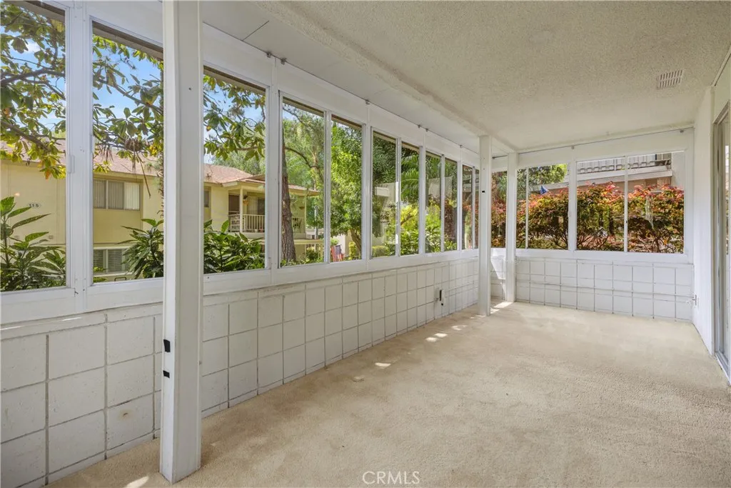 Majorca model in a convenient Gate 2 location with no stairs to unit and easy access to the carport. This 2 bedroom, 2 bath home is ideally situated close to shopping, dining, and medical facilities, making everyday living easy and convenient. The spacious living room flows into the dining area and opens to a large enclosed patio style sunroom, offering a great bonus space for relaxing, hobbies, or a home office. The kitchen has a functional layout with plenty of cabinet storage and workspace, and the home also features inside stackable laundry for added convenience. Both bedrooms are well sized, and the primary suite includes its own private bath. Newer vinyl dual-pane windows in bedrooms and the kitchen. This home offers a great opportunity to move right in or update over time to match your personal style. Laguna Woods Village is an Active Senior Community where the first occupant must be 55+, and a second occupant may be 45+. Enjoy resort style living with golf on the 27 hole championship course plus the 9 hole executive course, tennis and pickleball, fitness centers, multiple pools, an equestrian center, community gardens, art studio, world class woodshop, over 200 clubs, a free community bus, economical RV storage, guard gated security, and you are about 6 miles from Laguna Beach.