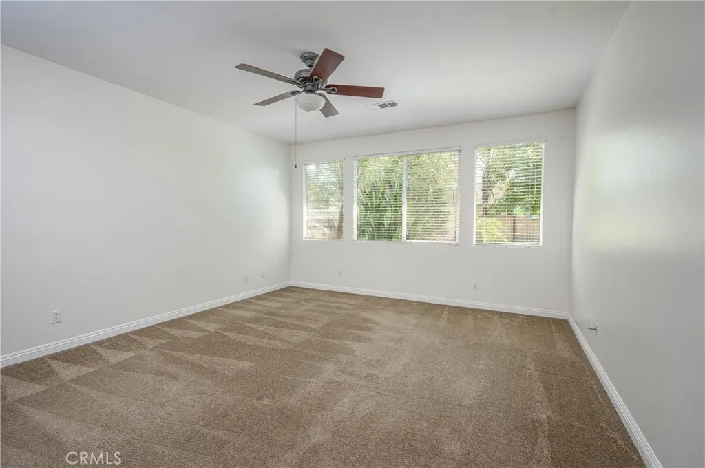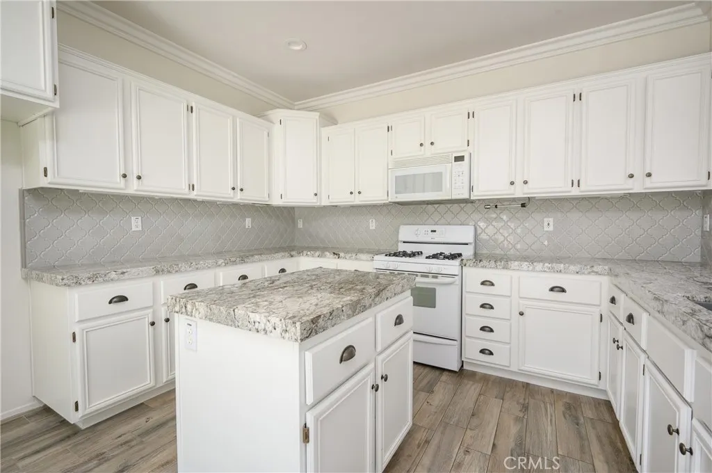 Welcome to this stunning single-story Menifee Ranch community home, built by Woodside Homes, offering 2,100 sq. ft. of beautifully upgraded living space on a spacious 7,841 sq. ft. lot. Built in 2003, this turnkey residence blends timeless design with modern comfort and curated designer touches throughout. Step through the elegant arched foyer into a thoughtfully designed open floor plan featuring 3 bedrooms and 2 full bathrooms. The split layout provides added privacy, with a spacious primary suite set apart from the secondary bedrooms. Enjoy versatile living spaces, including a bonus room or optional 4th bedroom, and a large great room complete with a cozy fireplace and abundant natural light pouring in through expansive picture windows. The custom-designed kitchen is a true showpiece, featuring crisp white cabinetry, a stunning granite island and countertops, and a designer backsplash that adds both texture and sophistication. Thoughtfully curated finishes and an open layout make this space ideal for both everyday living and elevated entertaining. Light-toned tile flooring with a wood-look finish flows seamlessly throughout the main living areas, complemented by a soft, neutral color palette and plush carpeting in the bedrooms. Retreat to the fully reimagined primary suite, designed as a spa-inspired sanctuary. The custom-designed primary bath showcases a sleek, floor-level walk-in tile shower, dual sink vanity with elevated lighting, and refined finishes that create a calming, luxurious atmosphere. A spacious, beautifully organized dream closet completes the suite. Step outside to your private entertainer’s backyard, complete with a fully equipped outdoor BBQ, inviting patio area, and lush, mature landscaping that creates a peaceful and private setting. Additional features include a 3-car garage with direct backyard access and a generously sized laundry room with ample storage. Ideally located near Menifee Town Center and Gale Webb Sports Park, as well as schools, shopping, dining, and local amenities, this home offers both convenience and community. This exceptional property truly embodies pride of ownership—offering style, comfort, and designer upgrades at every turn.