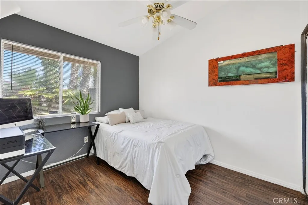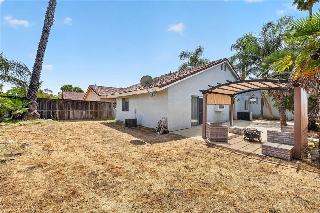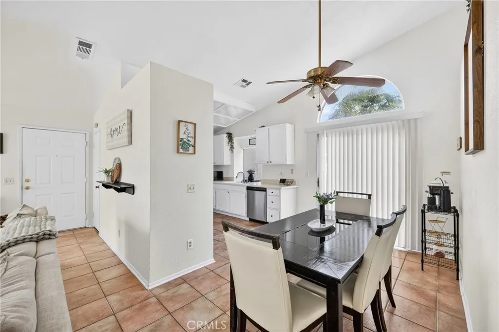 Step inside and feel instantly at home with soaring vaulted ceilings and an abundance of natural light that fills the space. The inviting living room features a charming fireplace, creating a warm and cozy setting perfect for relaxing or entertaining guests. Just beyond, you’ll find a comfortable dining area that flows seamlessly into the kitchen. From the kitchen, a sliding glass door opens to the backyard, where a pergola provides the perfect amount of shade—ideal for outdoor dining, barbecues, or simply unwinding. This indoor-outdoor connection creates a space you’ll love enjoying year-round. The thoughtfully designed layout offers privacy, with two bedrooms located on one side of the hallway and the primary suite on the other. The guest bathroom is bright and airy thanks to a skylight, while the primary suite features its own sliding door with direct access to the backyard. Outside, the spacious yard offers plenty of potential—including room to add a pool if desired. Additional highlights include a two-car attached garage and a convenient location just minutes from the 215 and 15 freeways, with shopping, dining, and everyday amenities close by. With a layout that lives larger than its square footage, friendly neighbors, and access to great schools, this home is a wonderful place to settle in and make your own.