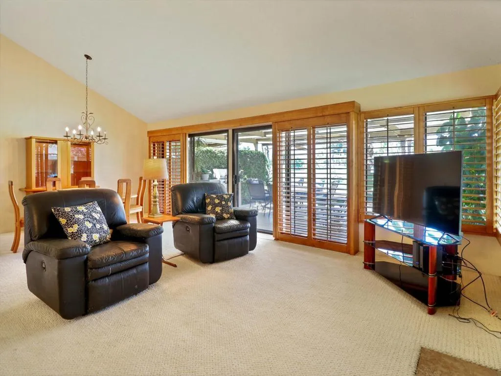 Welcome to Woodhaven Country Club. This condo features 2 bedrooms and 2 baths plus a stackable washer and Dryer. Custom Shutters through out the condo. 2 car garage with built in cabinets. Location, Location, Location, for the full Country club living experience. Located next to the large community pool and spa. Out the sliding glass doors and on to your lovely patio you have a view of the golf course's 18th hole with a mountain backdrop and a pond in view. There is a BBQ on the patio, Home is partially furnished and move in ready. Woodhaven offers several amenities including 4 community pools, a fitness center, tennis and pickleball courts, lots of activities. The golf course is open to the public with a very nice restaurant and bar. Woodhaven is a gated community with security staff. Several groceries stores, banking within walking distance or short drive. HOA covers Cable and Internet basic package.