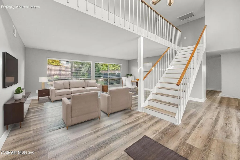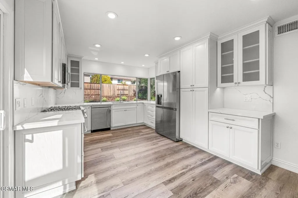 Welcome to this stunning two-story home in the highly desirable First Neighborhood of Westlake Village.This beautifully maintained residence features a fully remodeled kitchen with quartz countertops, soft-close pull-out cabinetry, and stainless steel appliances--perfect for those who love to cook and entertain. In addition, both upstairs baths have been completely remodeled with dual sinks in both as well as beautiful finishings. The home offers luxury vinyl flooring throughout, custom designer paint, and a flexible floor plan. All bedrooms are located upstairs, providing privacy and comfort. Downstairs, you'll find a spacious recreation room complete with a cozy gas fireplace and a built-in wet bar--ideal for relaxing evenings or gathering with guests.Step outside to your own private backyard retreat, highlighted by a tranquil pond and cascading waterfall--a peaceful setting to unwind after a long day.As part of the First Neighborhood community, you'll also enjoy access to fantastic amenities including a sparkling community pool, lush greenbelts, and beautifully maintained common areas.Additional features include a three-car garage with a utility sink, gardener service included for added convenience.Available now--don't miss this opportunity to lease a beautiful home in one of Westlake Village's most sought-after neighborhoods!Some photos have been virtually staged.