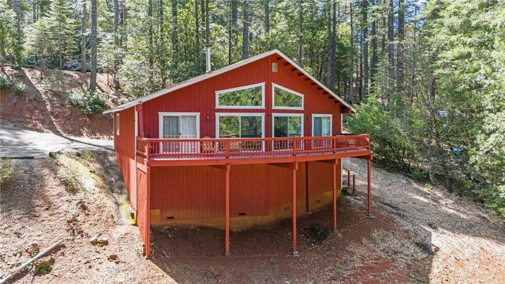Tucked away in the peaceful, pine-studded community of Merry Mountain Village, this charming 3-bedroom, 2-bathroom cabin is the perfect mountain getaway for nature lovers and outdoor enthusiasts alike. With a thoughtful split floor plan, the spacious primary suite is set apart from the two additional bedrooms, offering privacy and comfort for all. Step into the cozy living room and warm up by the wood-burning fireplace during snowy winter days, or soak in the views through large picture windows and sliding glass doors that bring the outdoors in. Enjoy seamless access to the full-length back deck from the living room and two bedrooms—perfect for morning coffee, stargazing, or listening to the seasonal stream trickling through your own slice of forested paradise. The kitchen is ready for you with newer (2022) appliances included, and the laundry area is conveniently located in the basement. A detached 2-car garage offers plenty of room for vehicles, gear, and all your mountain toys. This home sits privately below the road, providing a peaceful setting surrounded by trees and nature. Plus, it includes a second parcel of vacant land—giving you 1.05 acres to utilize/explore. HOA amenities include water and access to a refreshing community pool in the warmer months, and you're just a short drive to Sly Creek Reservoir for swimming, boating, and fishing! Whether you’re looking for a vacation home, a full-time escape, or a smart investment, this mountain cabin checks all the boxes. Come experience the serenity and safety of owning in a Firewise-designated mountain community—your private retreat in the forest is waiting!