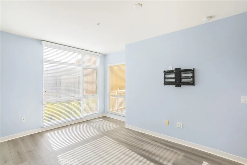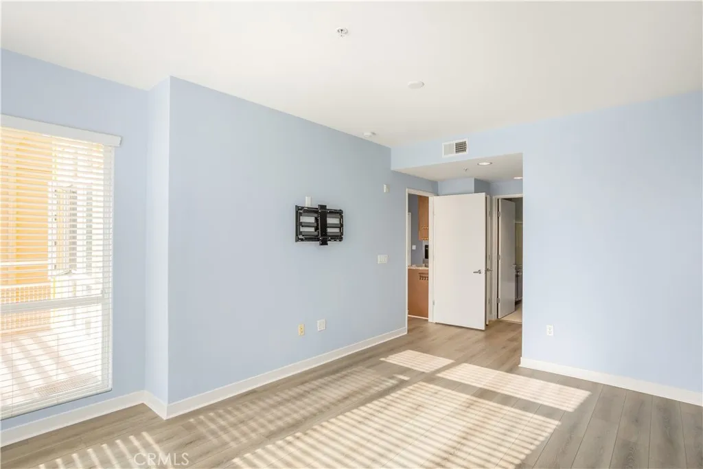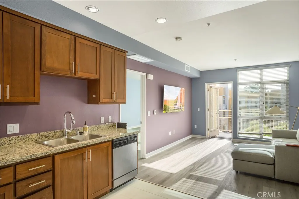Welcome to Ascent at Warner Center, a modern full-service luxury community built in 2010 in the heart of Woodland Hills. This rare top-floor corner 1-bedroom condo offers approximately 740 sq ft—the largest 1-bedroom floor plan in the building—with no neighbors above and only one shared wall for added privacy and quiet. Enjoy a private balcony overlooking the pool courtyard and greenbelt, a premium view compared to units facing other buildings or parking structures. The open-concept layout is filled with natural light and features a spacious living area and a well-appointed kitchen with stainless steel appliances, maple cabinetry, and granite countertops. The generously sized bedroom includes a walk-in closet and an en-suite bathroom with double vanities and granite counters. Additional highlights include in-unit washer and dryer, central heat and air, recessed lighting, and ample storage. Recent upgrades include brand-new flooring throughout, updated plumbing with a new toilet, refreshed lighting, and a clean in-wall TV power setup. This unit also includes two side-by-side parking spaces (not tandem) conveniently located near the elevator, along with a large private storage unit in a secure room. Residents enjoy resort-style amenities including a pool, spa, cabanas, fitness center, clubhouse, game room, outdoor lounges, BBQ areas, fire pits, dog park, EV charging stations, guest parking, and multiple elevators. Ideally located just moments from The Village, Westfield Topanga, Warner Center Park, dining, entertainment, and major freeways.