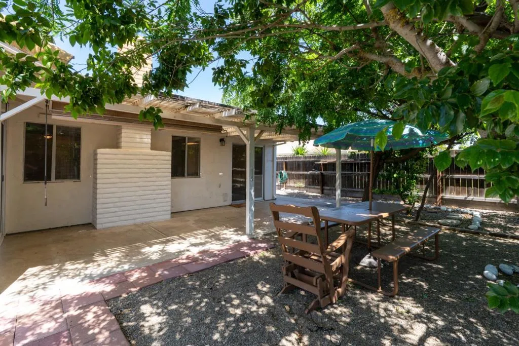 Welcome to Lakeshore Villages, a charming 55+ community in Los Banos, where comfort and ease come together in this inviting 2-bedroom, 2-bath home. Offering 1,002 square feet of thoughtfully designed living space on a generous 6,002 sq ft lot, this home is perfect for relaxed, low-maintenance living. Step inside to a cozy main living area featuring a brick-faced, gas-burning fireplace ideal for quiet evenings at home. Durable vinyl plank flooring flows through the entire home for easy maintenance. Many updates completed in 2022 add a fresh, modern touch including new sprinkler system in the front yard, electric garage door opener, ceiling fans, new dishwasher, refrigerator, countertops and garbage disposal. Additional highlights include a newer AC system installed in 2022, a tile roof, and a spacious 2-car garage with built-in storage. Enjoy outdoor living with a covered porch, patio, fruit trees (lemon and plum) and a backyard that includes an extra wide side yard perfect for s storage shed, hobbies or gardening. Front yard features a newer concrete pad along with a pomegranate & orange tree. With its welcoming feel and convenient location near everyday amenities, You can enjoy comfort, simplicity, and community. Some photos have been virtually staged.
