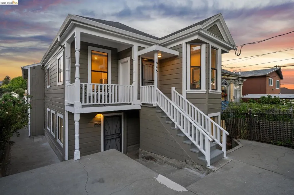 Vacant Duplex! Perfect for owner-occupancy plus rental income, two parties owning together, or as an income property! Fully vacant, spacious and renovated duplex in the vibrant Rancho San Antonio neighborhood adjacent to Ivy Hill. Each unit features four bedrooms and two full bathrooms. The open-concept living, dining, and kitchen areas are designed for modern living, highlighted by windows that flood the spaces with natural light. Upstairs, enjoy views of the hills, providing a serene backdrop to the urban setting. Each unit features a refreshed kitchen with stone countertops and stainless steel appliances. The windowed bathrooms and functional layouts ensure comfort and utility throughout. Outdoor living is a highlight, featuring a private fenced yard, a balcony for the upper unit, and an expansive deck for the lower unit — perfect for relaxation or entertaining. The property provides exceptional convenience with driveway and parking access from both the front and rear of the lot. This versatile duplex offers flexible ownership options and is a great way to build equity in the competitive East Bay market!