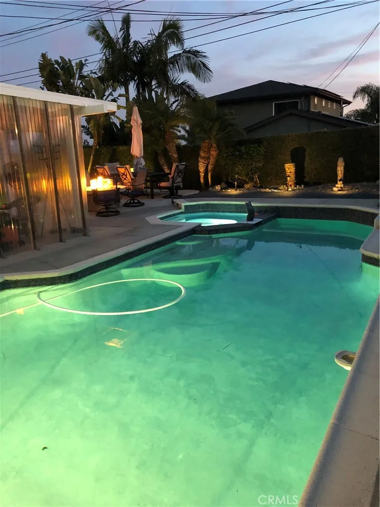 Welcome to your own private Oasis! This pool/spa home is a cottage style bungalow with mature Palm trees surrounding a tropical style pool. Perfect for all you DIYer's to double the sq ft when you remodel. It's equipped with artificial turf, vinyl and block wall fencing, it even has a peek-a boo view of Newport Beach from the back yard! Washer and dryer included. Efficient In wall air-conditioning throughout. Ceiling fans with built in thermostats, Granite countertops in the kitchen with Stainless steel appliances. New double oven in 2024. New roof in 2011. Reverse Osmosis water system, composite decking, 200 amp panel, propane fire pit. Close enough to the ocean you can smell the salt in the breeze! Short bike ride to Pacific City and Downtown HB! It's the perfect proximity to Summer beach concerts. Information deemed reliable but not guaranteed.