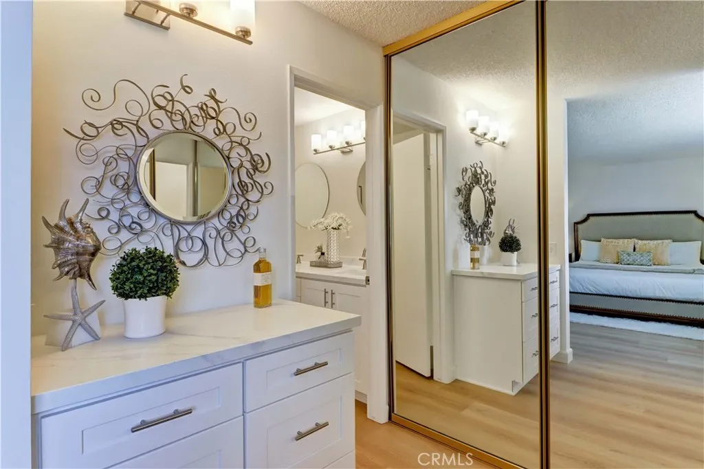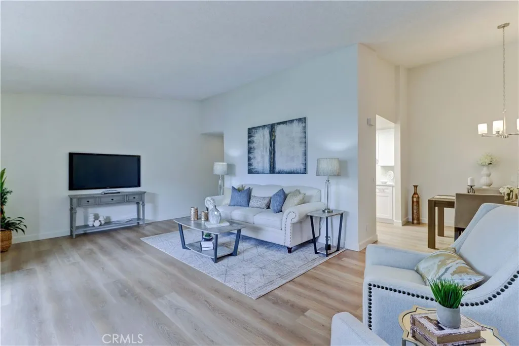 What an Exquisite Remodel! With Tasteful appointments throughout, this Very Popular 2 Br Upstairs Surf Model is a Must See. When you walk through the Front door, you are Greeted with Vaulted ceilings of which only one other upper listing currently has, not to mention gas capability with a forced air furnace with most others currently for sale operating completely on Electricity. Light, Bright and Airy this property you can call home. New luxury Vinyl Plank Flooring and High Baseboards throughout. Gorgeous Kitchen Remodel has New White Shaker Cabinetry, Quartz Countertops & Backsplash, LED Lighting with Color options, Gooseneck Faucet, Stainless Sink and New Stainless Steel Appliances. Includes a New Stainless Refrigerator. Both Baths have been completely Remodeled and Updated with Cabinetry & Quartz Countertops Matching the Kitchen, Reglazed Showers, Updated Exhaust Fans, Faucets, Sinks, Mirrors & Lighting. Additionally the Primary Bedroom has an Added Cabinet for Extra Storage Space in the Wardrobe area, as well as, the Primary Bath has Double Sinks and a New Glass Frameless Shower Enclosure. Laundry Closet on the Balcony has included Washer and Dryer and a Water Heater replaced in 2023. Garage off the Back of the Condo Bldg and Guest Parking. The Community Feels Like Being at a Resort with a Fabulous Recreation Center. 2 Pools, 2 Spas with Main Rec Center Pool being almost Olympic Size! Tennis Courts, Pickleball Courts, Ping Pong, Dances, Trips, Movies, Clubs, Parties, Concerts, Fitness Center, Fitness classes-Water Aerobics, Yoga & Zumba, Woodshop, Chorale, Quilters, Art & Ceramics Clubs & Classes, Billiards, Putting Green, Library & Much More. Well Maintained Grounds with Mature Trees. Located in the heart of the Famous Beaches of Huntington Beach and close to the HB Pier, Downtown Area & Pacific City. You are Close to Shopping and the Post Office. 24 Hr Guard Gated 55+ Community Near the Ocean (Approx.1.2 Miles)