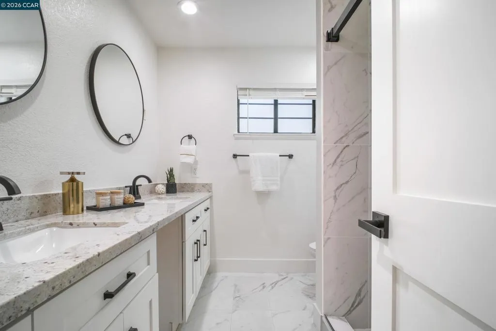 Fully renovated detached home in Fremont! High ceilings, luxury vinyl plank floors & recessed lighting throughout. Bright living room w/cozy fireplace & sliding door to the outdoors. Chef's kitchen features brand-new Bosch stainless appliances, 5-burner gas range, quartz counters, white shaker cabinets w/matte black hardware & hexagon tile backsplash. Spacious primary suite w/bay window, spa-inspired ensuite featuring dual sinks, quartz counters & walk-in shower. All baths fully updated w/granite counters & matte black fixtures. LG washer & dryer included. Steps to community pool, BBQ area, w/visitor parking front & rear. Move-in ready!!