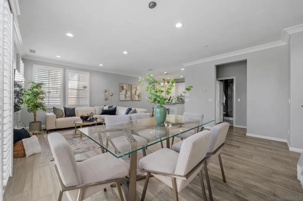 One of the best values in 92130! This beautifully maintained 4-bedroom, 3-bath home offers the perfect blend of modern luxury and coastal living just minutes from the beach Lightly lived in as a second home, the property has been barely used and meticulously maintained, presenting in pristine, like-new condition with no kids or pets over the past five years. Inside, enjoy a bright open-concept layout with recessed lighting and custom plantation shutters throughout. The upgraded kitchen features a brand-new stove, oven, and dishwasher, ideal for both daily living and entertaining. A first-floor bedroom and full bath provide flexibility for guests. Upstairs includes three additional bedrooms, highlighted by a spacious primary suite with private balcony access, dual vanities, soaking tub, walk-in shower, and walk-in closet. A second-floor laundry room with newer washer/dryer and a versatile loft space add everyday convenience. Enjoy walking distance to Top ranked schools like Canyon Crest Academy, Pacific Trail Middle School and Pacific Highlands Ranch Village Center. And short drive to One Paseo, beaches, parks, and major freeways (56, I-5, and I-15). A rare opportunity to own a truly move-in ready, like-new home in one of Carmel Valley’s most desirable communities.