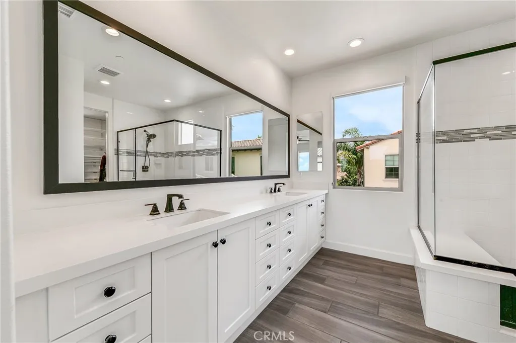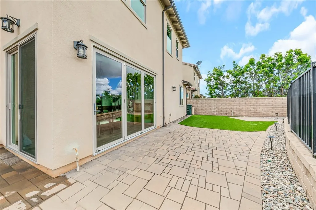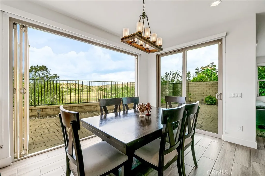Enjoy breathtaking year-round sunset, mountain, and city light views from this stunning 4-bedroom, 3-bath home built in 2017 and upgraded throughout. From the moment you enter, elegant porcelain tile flooring and a bright, open layout create an inviting atmosphere. The spacious Great Room features fully retractable stacking doors, delivering the ultimate indoor-outdoor California living experience. The chef’s kitchen is beautifully designed with a massive center island, granite countertops, stainless steel appliances, and is perfect for entertaining and everyday living. A remodeled downstairs shower adds flexibility for guests or multigenerational living. Upstairs offers a well- planned layout with a convenient laundry room, two full bathrooms, and three additional bedrooms, including a luxurious primary suite with elevated views. The primary bath features upgraded white cabinetry, a spacious walk-in shower, upgraded tile flooring, and a generous walk-in closet. Recent improvements include engineered wood flooring (installed in 2022) on the staircase, upstairs hallway, and all bedrooms, along with a whole-house water softening system for enhanced comfort. Step outside to a private backyard oasis with beautiful pavers, low-maintenance landscaping, artificial turf, and a smart drip irrigation system; ideal for relaxing or entertaining. This smart home includes a Nest doorbell, keyless entry, smart lock, and Nest thermostats. Located in the highly desirable Baker Ranch community with resort-style amenities including pools, parks, trails, tennis, basketball, beach volleyball, dog park, and clubhouse. No Mello-Roos and low HOA. It is a rare opportunity to own a home that perfectly blends luxury, comfort, and lifestyle. Don’t miss it!
