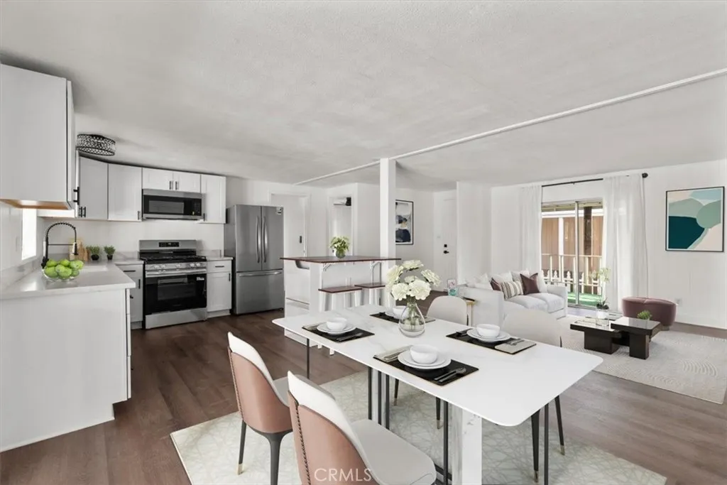 The ONLY 4 bedroom, 2 bathroom home available in Park Royale, and it has been fully remodeled top to bottom for true move-in ready living! This rare open-concept floor plan has been transformed with fresh paint inside and out, brand new stainless steel appliances, new quartz countertops, new cabinetry, and waterproof luxury vinyl plank flooring throughout. Designer bathrooms feature new vanities with double sinks and upscale finishes, while abundant natural lighting flows through every room. Outside, enjoy 3-car covered parking under an awning, two storage sheds, and a welcoming side patio — perfect for morning coffee or evening relaxation. Additional highlights include a certified roof, a one-year home warranty with AC and heating coverage, and a new refrigerator included with the home. An exceptional opportunity to own the largest floor plan in the community — showings available by appointment.