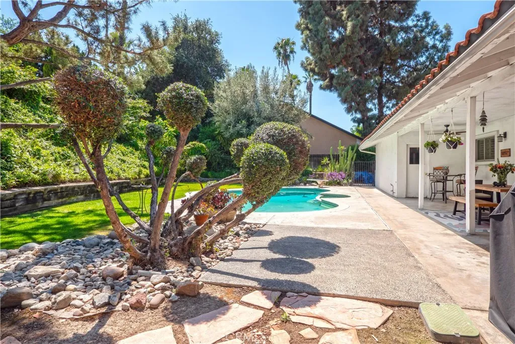 Ideally positioned at the beginning of a quiet cul-de-sac in the established hillside community of Canyon Crest, 6113 Enfield Place offers an elevated Southern California lifestyle surrounded by mountain views, mature landscaping, and a sense of everyday serenity. This beautifully upgraded ranch-style home blends timeless design with thoughtful modern comfort, just moments from the Canyon Crest Country Club and neighborhood amenities. Inside, warm hardwood and tile flooring create a welcoming foundation throughout the home. The living room and family room share a stunning dual-sided fireplace, providing inviting spaces to relax, entertain, or gather with ease. Whether hosting guests or enjoying quiet evenings, the layout offers flexibility and connection, enhanced by abundant natural light. The gourmet kitchen is designed for both form and function, featuring granite countertops, a stone backsplash, recessed lighting, a built-in refrigerator, and a wine fridge—perfect for casual meals and special occasions alike. Bathrooms have been tastefully upgraded with refined finishes that reflect quality and care. The primary suite is a true retreat, complete with a private sitting area and a spa-inspired bathroom with a walk-in shower, offering a peaceful escape at the end of the day. Outdoors, the backyard is a private sanctuary. Framed by a lush green backdrop, the space features a covered patio, pool and spa, and generous planting areas that make it a genuine gardener’s paradise. This tranquil setting is ideal for al fresco dining, weekends by the pool, or simply unwinding in nature. Perfectly located, the home is close to the quaint Canyon Crest Town Center for local dining and shopping, and just minutes from Downtown Riverside and the iconic Mission Inn, offering the best of hillside living with convenient access to culture, dining, and historic charm. 6113 Enfield Place is more than a residence—it’s a lifestyle defined by comfort, beauty, and an exceptional Canyon Crest setting.