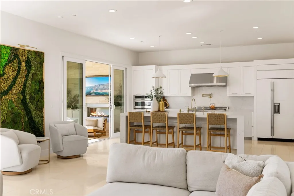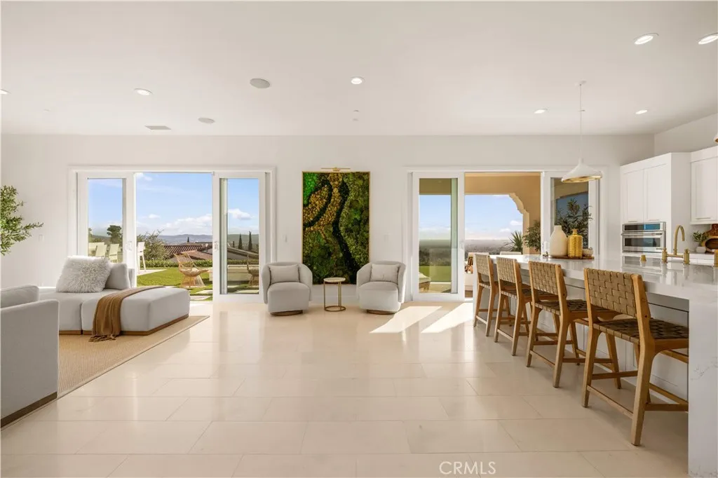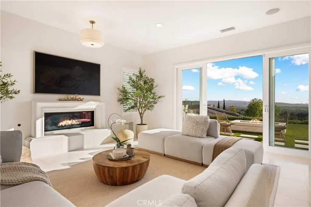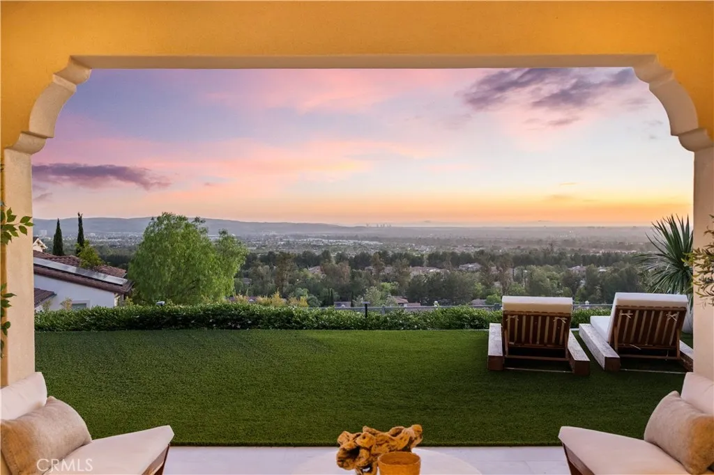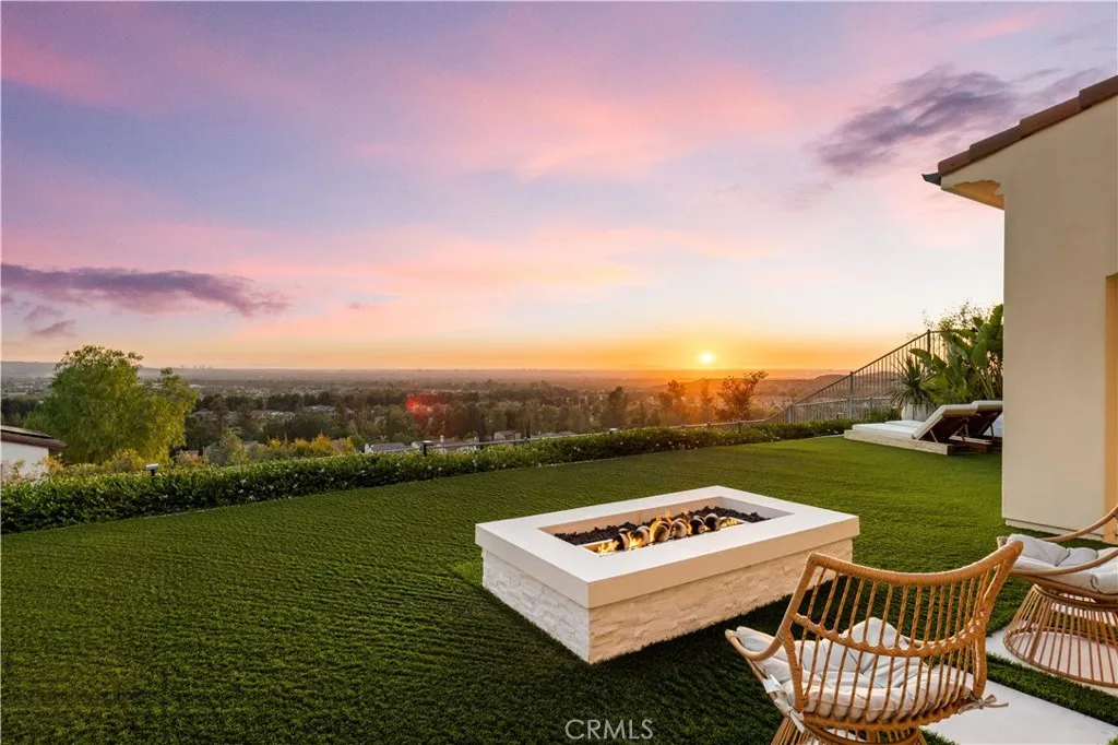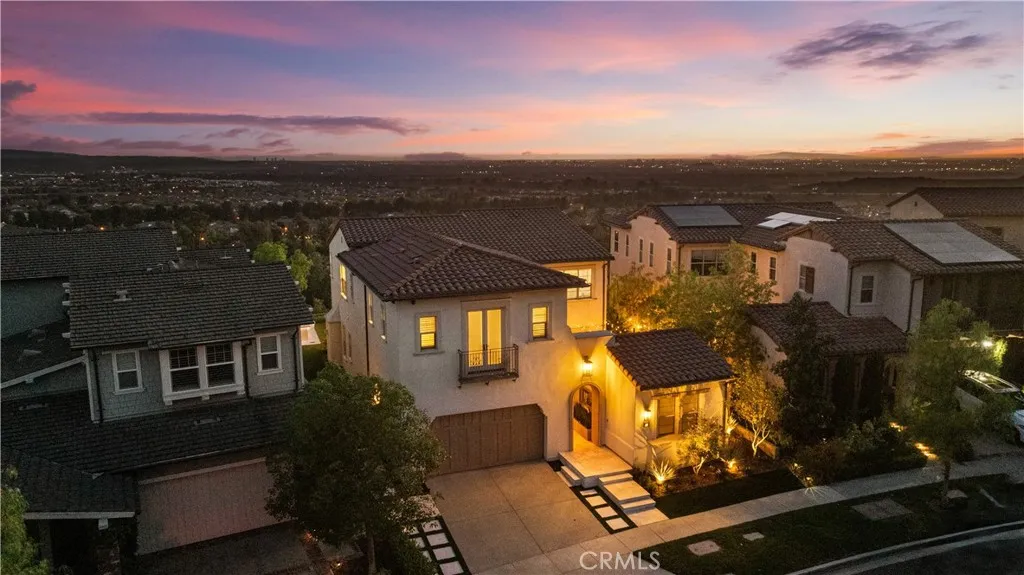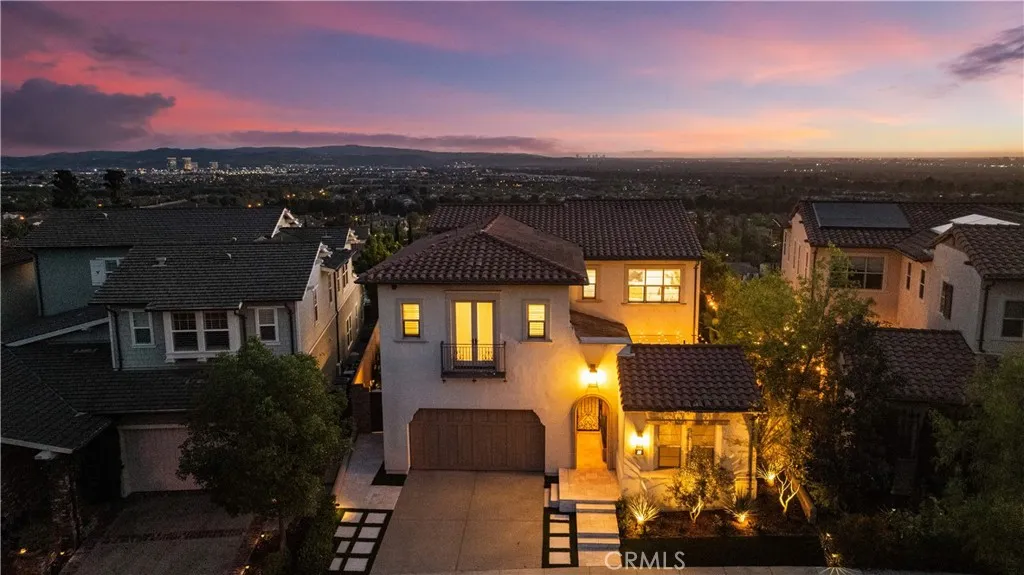Welcome to this beautiful view home situated at the highest point of the gated Lambert Ranch community in Irvine. With the rare perk of no Mello-Roos, this property offers incredible panoramic vistas of daily sunsets, twinkling city lights, Catalina Island, the Palos Verdes Peninsula, and even the Disneyland fireworks. It's an expansive view that truly rivals and arguably surpasses Orchard Hills Summit. The property greets you with a private stone courtyard featuring relaxing water features and a highly convenient detached guest casita, perfect for visitors or a quiet home office. Inside, the 4-bedroom, 4.5-bathroom layout is open, inviting, and thoughtfully designed. A spacious great room and formal dining area flow seamlessly into a kitchen built for both everyday living and easy entertaining. The kitchen features a large center island, a 6-burner Bertazzoni range, imported German pendant lighting, a walk-in pantry, and a dedicated butler’s pantry complete with dual wine fridges. French doors open to a fantastic backyard tailored for enjoying the incredible scenery. Out here, you'll find a covered loggia with a gas fireplace and TV setup, a stone patio with a built-in BBQ, a firepit, and plenty of space to relax. Fully wired with an integrated indoor/outdoor speaker system, it's the perfect spot to hang out and take in the surroundings. Upstairs, the primary suite serves as a relaxing retreat, complete with a spa-like bathroom offering a soaking tub, dual vanities, a separate shower, and a large walk-in closet. Two additional en-suite bedrooms round out the second level, giving everyone plenty of privacy and space. With over $300,000 in upgrades throughout, including varied-width wood-look tile flooring, designer wallpaper, and premium finishes, this Lambert Ranch estate is completely move-in ready and offers a genuinely special place to call home.