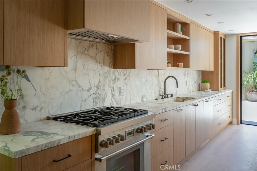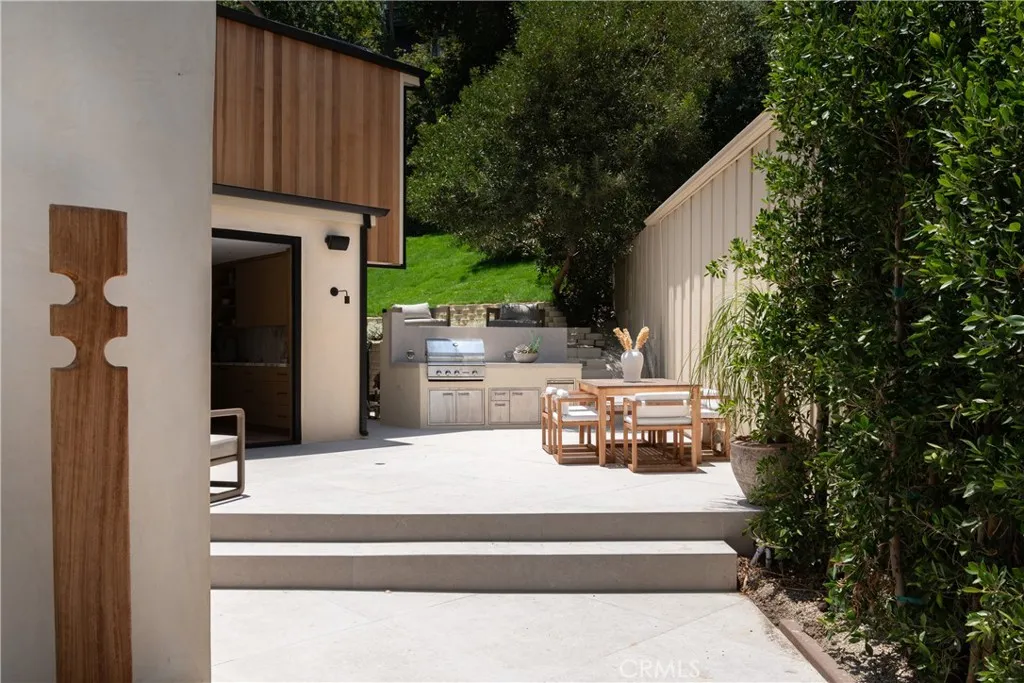 Privately set south of the Boulevard in a coveted Studio City pocket, this reimagined mid-century home offers rare peace and privacy just minutes from premier shopping and dining. The 3-bedroom, 2.5-bath residence with additional office features warm cedar and stone accents, herringbone wood floors, custom millwork, and light-filled open living spaces designed for effortless flow. The chef’s kitchen showcases white oak cabinetry, Viola Monet Calacatta marble, and paneled appliances, opening to a private patio with built-in grill. Upstairs, the serene primary suite includes expansive windows, custom closets, and a spa-inspired bath with soaking tub and walk-in shower. Additional bedrooms and a flexible den provide versatility. Close to hiking trails, Sportsmen’s Lodge, Erewhon, Equinox, and top Studio City amenities, this home offers a quiet, refined retreat in a prime location.