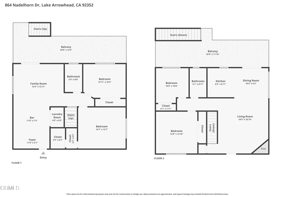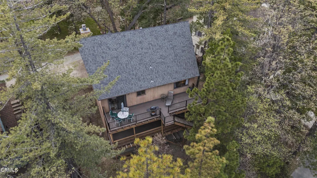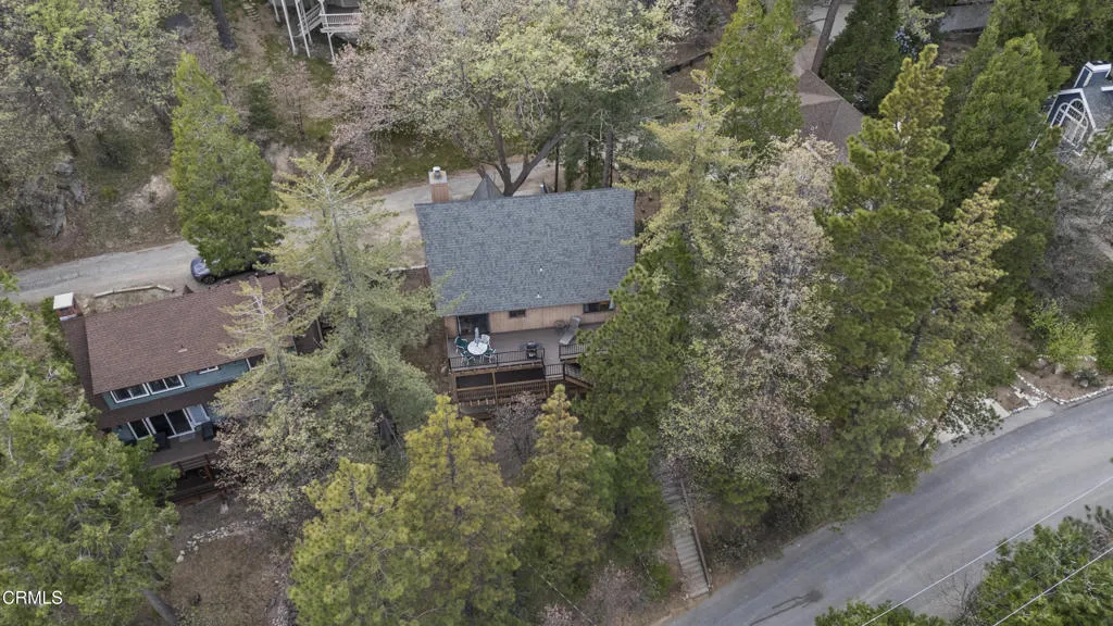 Welcome to a charming and quiet mountain getaway for your family vacations, short-term rental opportunities or investment potential. Lake rights, peek-a-boo lake views, stunning ridgeline views, flexible layout and plenty of parking--this is the one you've been waiting for! A rare and cozy four bedroom cabin nestled in beautiful Arrowhead Woods, the layout features two bedrooms and one full bathroom on each level, making it ideal for dual living, guest accommodations, or extended stays. Sleeps nine people comfortably in beds--perfect for large or multiple families. Even has a twin-over-full bunk bed for the kids!Each floor has plenty of natural light streaming in from large sliding doors and windows that look out over mountain views. Kitchen features newer fridge, stove and dishwasher. Separate entrances to each level create an exciting opportunity for flexible, income-producing potential--perfect for investors looking to maximize the property. Downstairs, you'll find a built-in bar and additional entertaining space, adding even more value and appeal for hosting and guests. Home is being offered fully furnished, making it truly move-in ready--just bring your bags and start enjoying. A turnkey opportunity with immediate usability--ideal for those looking to start enjoying or generating value right away.The recently reinforced, upgraded and waterproofed decks are perfectly positioned to soak in the scenery, whether you're enjoying your morning coffee or unwinding at sunset. Other recent upgrades include: completely rebuilt electrical panel, complete renovation of attic and crawlspace with rodent-proofing and brand new R-38 insulation and foundation stabilization with carbon fiber concrete stitching. Located just minutes from the Village and the lake, in one of Lake Arrowhead Woods' most desirable neighborhoods. High-demand location for both full-time living and vacation stays, with close proximity to dining, shopping, and year-round recreation. Whether you're looking for a full-time home, weekend escape, or investment opportunity, this property offers a rare combination of lifestyle and versatility!