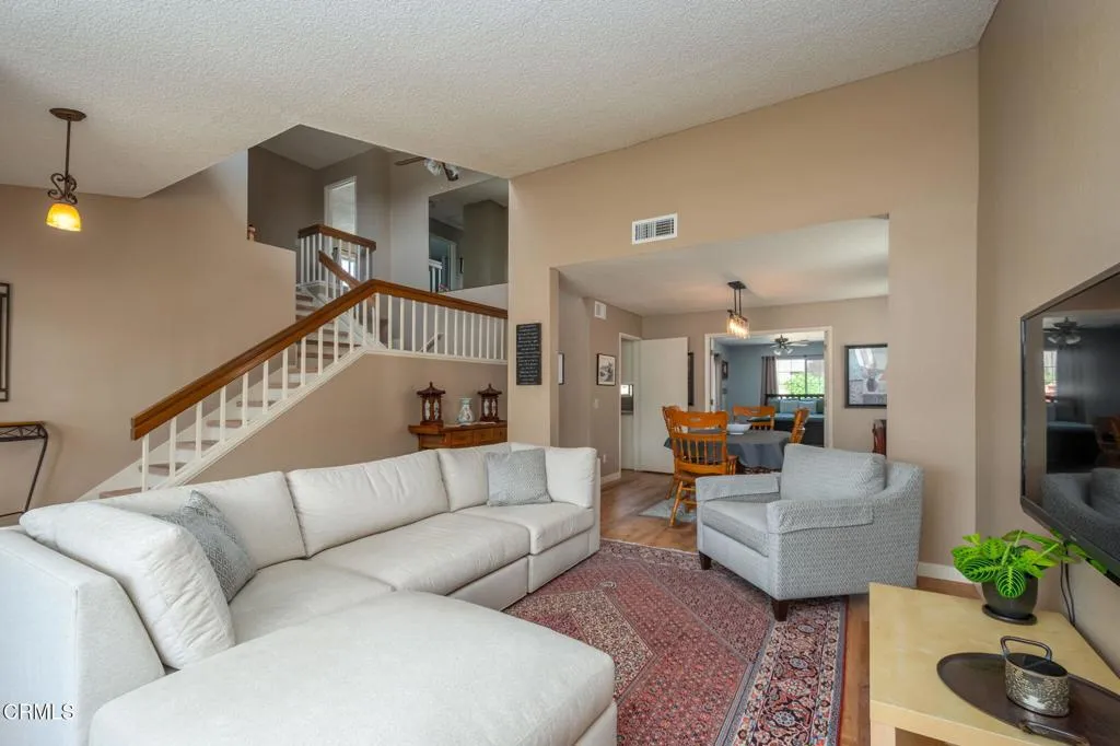 Welcome to your next home in the heart of Mission Oaks in Camarillo--where space, comfort, and thoughtful upgrades come together beautifully.This exceptional Hillcrest residence offers one of the largest floorplans in the neighborhood, with approximately 2,400 square feet of living space set on an expansive 7,100+ square foot lot. Inside, you'll find a versatile layout with three bedrooms upstairs, a spacious bonus room downstairs, and 2.5 bathrooms.The interior features both a formal living room and comfortable family room, complete with a brick-front fireplace that creates a warm and inviting focal point -- perfect for everyday living or gathering with guests. Upstairs, the layout includes a spacious primary suite and a uniquely oversized third bedroom with dual closets--perfect for a home office, kids' playroom or gym space. Downstairs, the spacious bonus room offers even more flexibility. It can easily serve as a game room or private space for extended family. The home has been extensively upgraded, including a fully paid solar system by Tesla with a transferable warranty, along with a newer HVAC system, roof, flooring, exterior paint, and beautifully updated bathrooms--offering both comfort and efficiency.Step outside into a backyard retreat designed for relaxation and enjoyment. The large patio provides the perfect setting for entertaining or unwinding at the end of the day. In addition, the thoughtfully landscaped yard offers both avocado and citrus trees for your enjoyment. Ideally located within the community is both Tierra Linda elementary school as well as Woodcreek park. You'll also enjoy the convenience of local shopping, dining and easy freeway access from this location. Make no mistake, this property is a wonderful place to call home, offering comfort, space and a setting you'll enjoy for years to come.