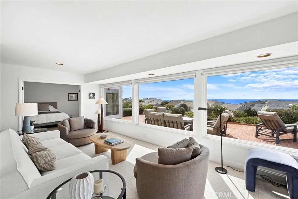 Views, Views and more Views! Perched at the end of a quiet cul-de-sac in one of Dana Point’s most sought-after gated communities NIGUEL SHORES. This coastal paradise offers the ultimate in privacy, coastal luxury, and SINGLE-LEVEL living. With only one neighboring home, this rare residence enjoys unmatched tranquility and expansive ocean views from the main living areas, creating a serene backdrop for daily living and peaceful relaxation. The spacious living room is bathed in natural light and frames dramatic ocean vistas, flowing seamlessly to the outdoor patio—ideal for relaxing against a coastal backdrop. While the dining room sits just off the main living space, it remains intimate and connected to the heart of the home. The kitchen is well-appointed and functional with easy access from the garage. Laundry room sits between the kitchen and direct access garage. The primary suite is a true retreat with a cozy fireplace, its own ocean vistas, providing a peaceful haven to unwind. Built in cabinets and ample closet space ties together the use of the space perfectly. The third bedroom (per the tax records) functions as an office today, an attached two-car garage, a thoughtfully landscaped yard, and a setting that embraces the relaxed elegance of coastal Orange County. NIGUEL SHORES offers a private beach bluff overlooking Strands Beach, private parking and private direct access to the beach. Additional community amenities include a Jr. Olympic size pool heated year-round, spa, saunas, pickleball, tennis, bocce ball, basket ball, playground and greenbelts that wind throughout the community. Located just minutes from world-class beaches, Dana Point Harbor, the Lantern District, and renowned resorts, this is a rare opportunity to enjoy a private slice of the California coast.
