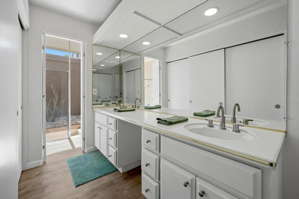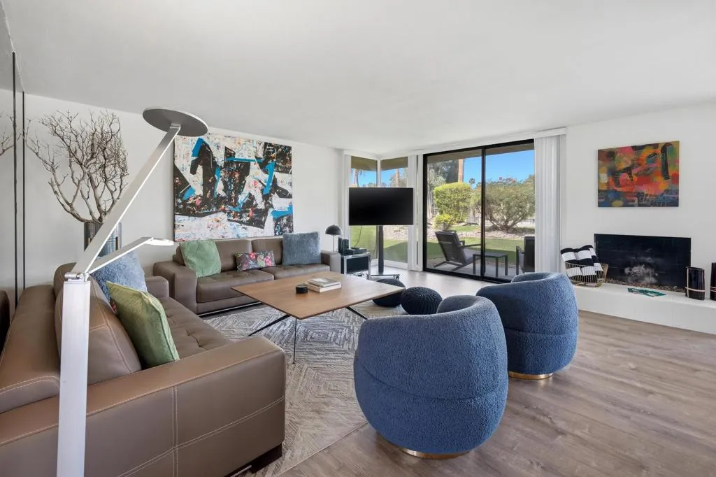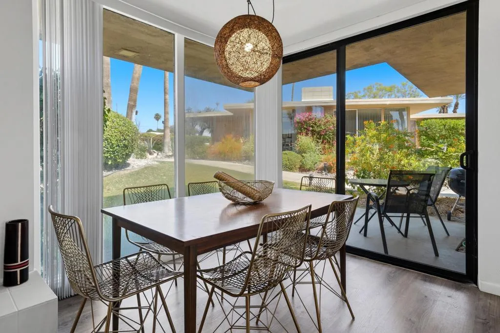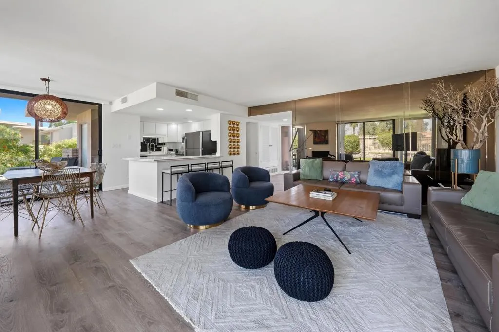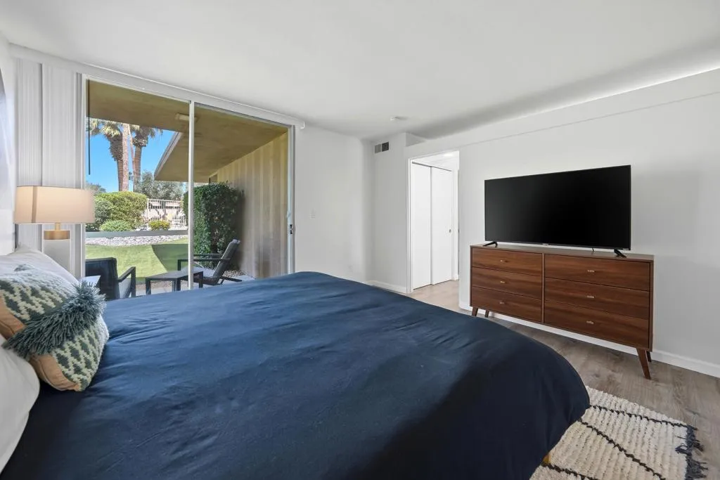 Welcome to Bermuda Dunes Country Club--where timeless design meets modern luxury. This beautifully furnished two-bedroom, two-bath condo features a light-filled open floor plan that seamlessly blends indoor and outdoor living. Located just steps from the year-round heated community pool and spa, it offers the perfect balance of convenience and relaxation. Enjoy serene views from multiple private patios, ideal for unwinding or entertaining. Additional highlights include an attached golf cart garage and a designated covered parking space. Perfect for those seeking a comfortable and stylish home in a peaceful desert setting. Golf and Social Club memberships are available.