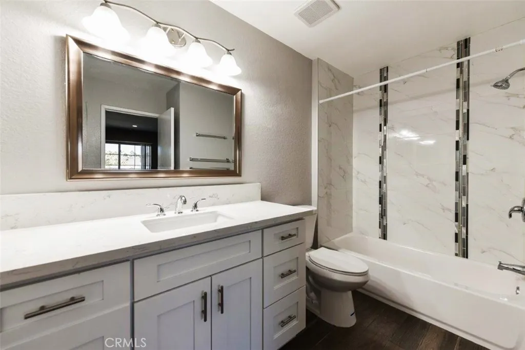 Highly desirable and fully upgraded 2 bedroom 2.5 bath two stories end-unit in the beautiful landscaping Columbia Square, within walking distance to UCI and University Shopping Center. Open floor plan with upgraded kitchen, laminate wood flooring, recess lights, and dual pane windows throughout. Two large bedrooms upstairs, each has its own private full bathroom with Italian-tile shower and Carrara-white quartz vanity. Large living room with fireplace & adjacent dining area door out to private patio. Enjoy the comfort and convenience of an urban lifestyle with nearby entertainment, restaurants, theater, gym, shopping, and more. Close to beach, freeways, and John Wayne Airport. HOA recreational amenities include: pools, play grounds, parks, tennis, and sand volleyball courts.