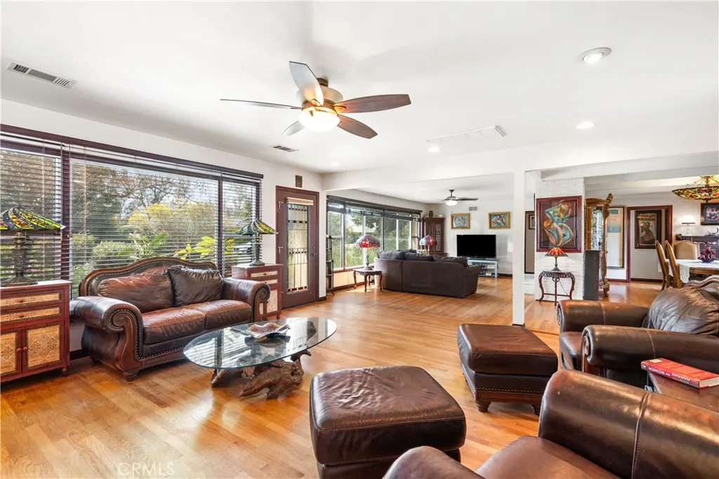 Charming mid-century ranch home located in the desirable Victoria-area pocket of Riverside, just minutes from University of California Riverside, Polytechnic High School, downtown Riverside, and the iconic Mission Inn Hotel & Spa. This home offers an open layout with connected living, dining, and family areas, solid wood oak flooring, abundant natural light, and a fireplace. The kitchen features upgraded custom red oak cabinetry, granite countertops, a center island with built-in gas range, and stainless steel appliances, ideal for everyday living and entertaining. The oversized fully-permitted primary suite includes a walk-in closet, luxury sunken tub, and a separate tiled shower. Additional features include a tankless water heater, water softener system, and energy-efficient utilities through Riverside Public. The expansive back yard lot is well-maintained with mature citrus trees, irrigation, and hardscape, offering plenty of room for outdoor living. The front yard includes established landscaping, a horseshoe driveway, and a pull-through garage as an added feature. Situated near the prestigious Victoria Club and backing to Bordwell Park, this home offers added privacy and access to open space. Conveniently located near top-rated schools, shopping, dining and easy freeway access, all within a well-established Riverside neighborhood.