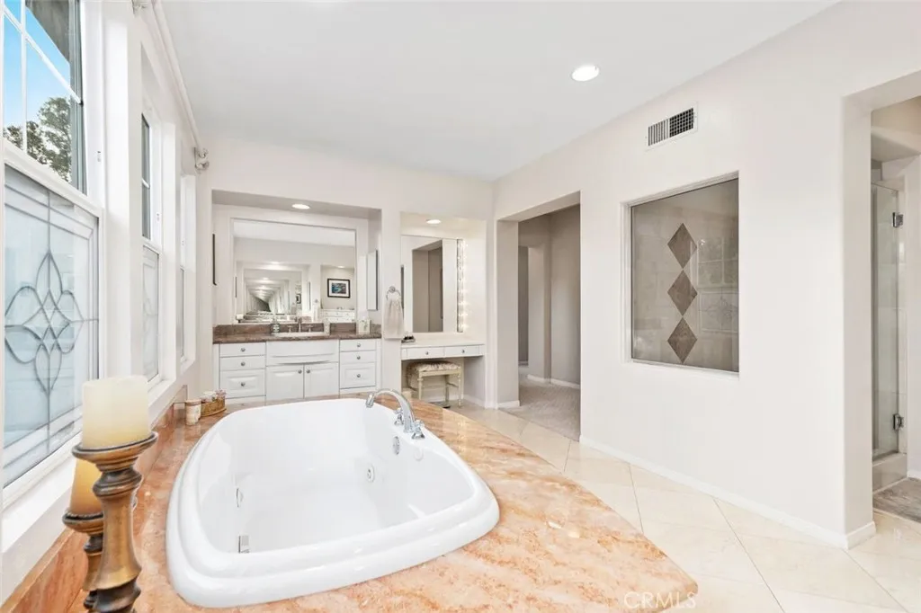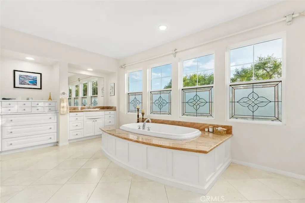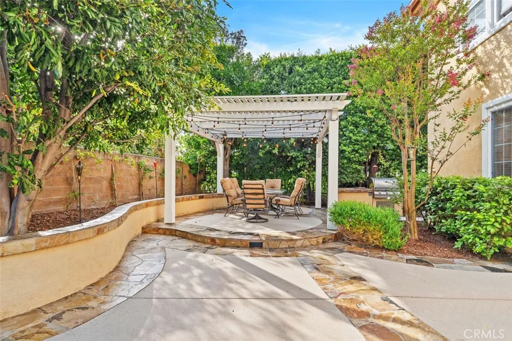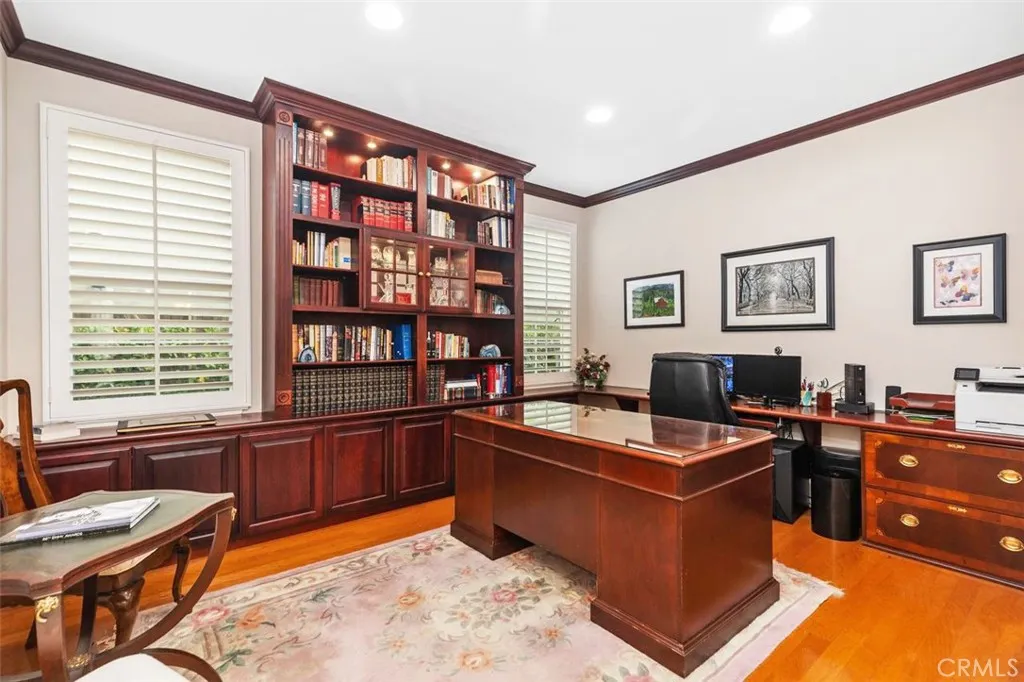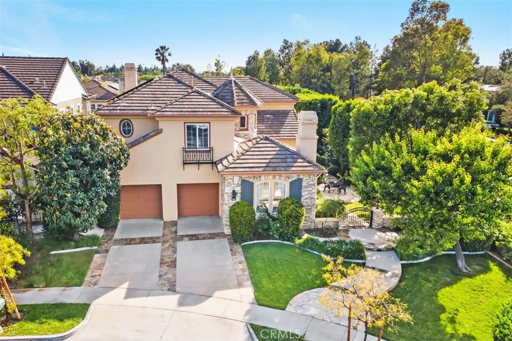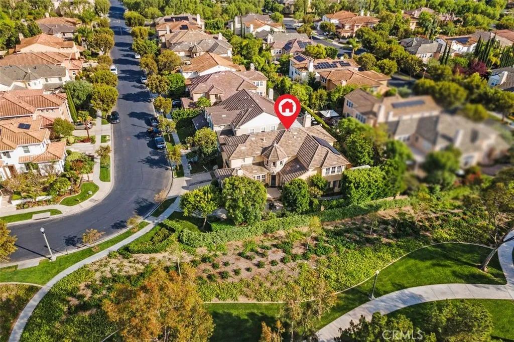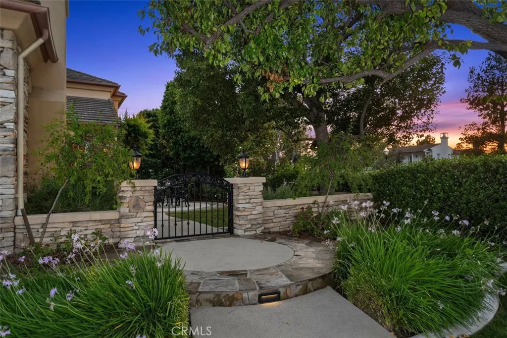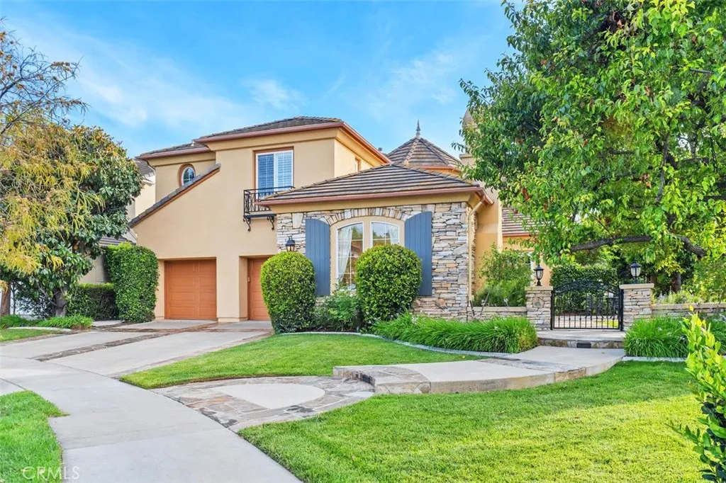 Positioned within one of the most exclusive and sought-after enclaves in all of Northpark, this extraordinary Huntington estate commands a truly irreplaceable setting along a serene, tree-lined paseo, complete with winding walking paths offering a level of privacy, tranquility, and scenic beauty that defines the very best of this guard-gated community. Encompassing over 3,900 square feet of refined living space, this distinguished residence presents five bedrooms and four full bathrooms, thoughtfully curated to balance grandeur with everyday comfort. A main-level bedroom and full bath provide ideal accommodations for guests, while a richly appointed executive office features a custom built-in mahogany bookcase. The formal living room exudes timeless sophistication, anchored by an impressive fireplace, while the dining room graced with French doors opening into a spacious front courtyard, invites seamless indoor-outdoor entertaining. The gourmet chef’s kitchen is a statement of both function and design, showcasing an expansive center island, granite slab countertops, tile backsplash, and a spacious breakfast nook. Flowing effortlessly into the family room, this space is enhanced by a raised hearth fireplace, built-in media center, custom cabinetry, and integrated surround sound creating an atmosphere of understated luxury. Upstairs, the primary suite is a private sanctuary of grand scale, featuring a spa-inspired bath accentuated with marble slabs, and expansive walk-in wardrobes. Three additional bedrooms offer generous proportions, one including a private ensuite bathroom. The upgrades throughout include crown molding, rich wood flooring, custom window treatments, and specialized audio. The outdoor grounds rival a private resort, designed for elevated entertaining and secluded relaxation complete with a built-in barbecue, multiple lounge areas, covered dining area, fire-pit feature, lush mature landscaping, and a custom in-ground spa adorned with a cascading waterfall and ambient LED lighting. Residents of Northpark enjoy an unparalleled lifestyle defined by exclusivity and security, with 24-hour guard-gated access and an array of resort-caliber amenities including 5 pools, 3-lighted tennis courts, basketball courts, clubhouse, and beautifully maintained parks. With its premier paseo location widely regarded as one of the finest in Northpark, this exceptional residence represents a rare offering where luxury & privacy converge in perfect harmony.
