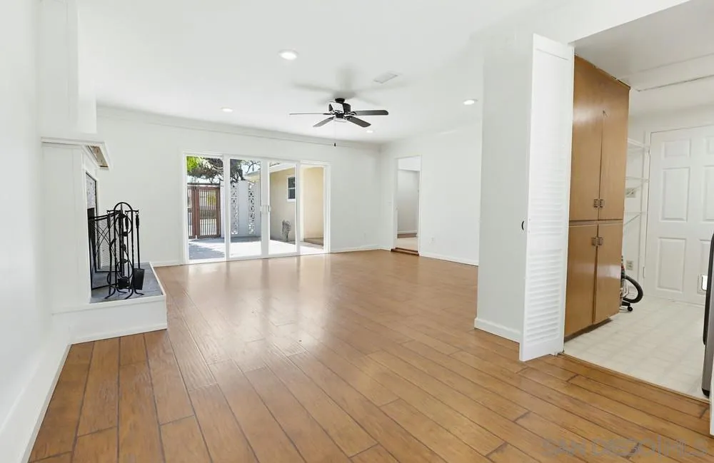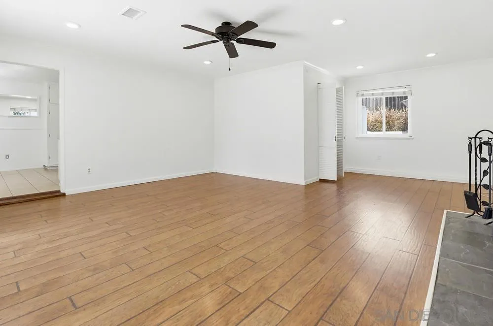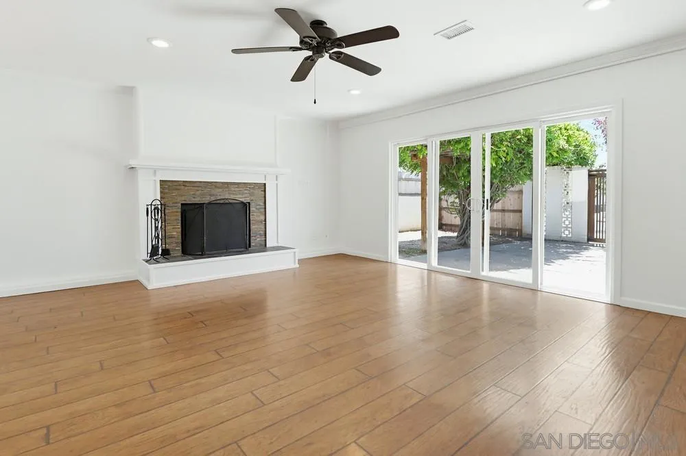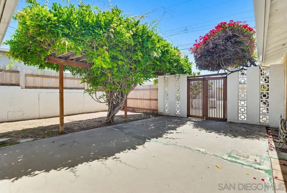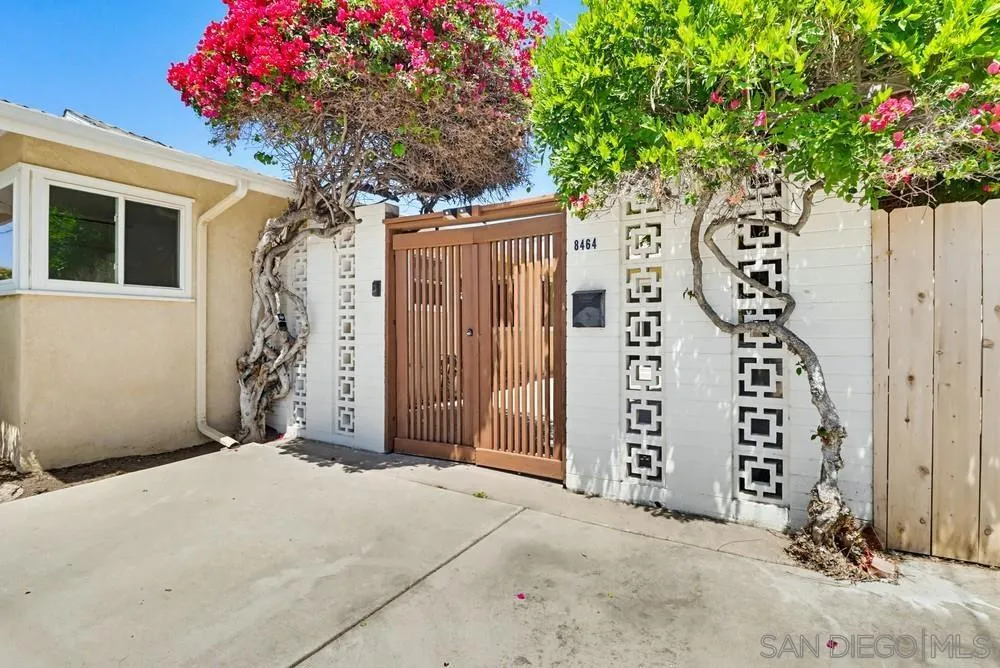 Welcome to this upgraded 3-bedroom/2-bath home located in the highly desirable San Carlos neighborhood. This home was the model home for this floorplan, and the builder made the garage a reception area with a fireplace and put a block wall in front with a wood gate for entry/patio purposes. The original house was the 1251 Sq. Ft. model. 8443 across the street is what our listing would look like if you re-converted the space back into a garage. Enter through a charming, gated courtyard. Inside, the home features luxury vinyl wood plank and tile flooring throughout, along with fresh interior paint and exterior touch-ups, dual pane windows & slider and newer FAU & AC (in attic). Oversized windows and sliding glass doors fill the home with abundant natural light, complemented by recessed lighting for a bright, modern feel. The spacious living room is perfect for relaxing or entertaining, complete with a gas-burning fireplace accented by mosaic tile, a wood mantel, and a Silestone hearth. A large sliding door leads seamlessly to the backyard patio, creating ideal indoor-outdoor flow. The converted garage is now an expansive 23x18 family room, offering additional living space with a wood-burning fireplace, mosaic tile surround, wood mantel and slate tile hearth. An oversized slider opens to the front courtyard. The laundry room is just off the family room and features abundant cabinetry, shelving, a utility sink and direct access to the backyard patio. The open concept kitchen is perfect for entertaining and connects to the dining area. See Supplement The kitchen offers beautiful Corian countertops, a newer stainless-steel refrigerator, wood cabinetry, a pantry, and tiled flooring. The primary suite offers sleek vinyl wood plank flooring, a large corner window overlooking the front yard and a private en-suite bathroom with a tiled shower featuring designed inlay and a pedestal sink. Step outside to the backyard designed for low maintenance and enjoyment, featuring a large, covered patio, artificial turf, block garden beds, a retaining wall, and three storage sheds. The spacious woodshed has a new roof, a charming deck area- ideal for creating a cozy outdoor experience. It is conveniently located within walking distance to shopping and close to restaurants, parks, schools and freeway access. Lovingly owned for 25 years.
