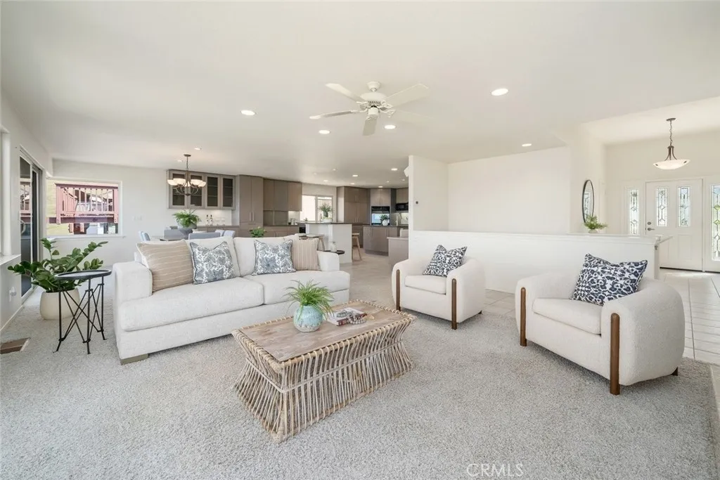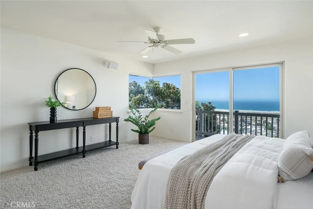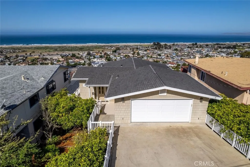 Perched in Morro Bay Heights, this beautifully designed custom built home has unparalleled ocean views of Morro Rock and the Pacific Ocean! With 2,508 sq ft, this property offers 3 bedrooms and 2.5 bathrooms on a 4,000 sq ft lot. The "Wow" factor of this home with its unobstructed views, delivers one of the city's most breathtaking coastal panoramas.The main living level is bathed in natural light with large windows and slider doors that frame the gorgeous ocean views. The open floor plan connects the living room, dining area, and kitchen. The spacious and thoughtfully designed kitchen features modern-style cabinetry, tile flooring, a center island, a separate bar/prep area, a walk-in pantry and a built-in desk/workspace. All three bedrooms are located on the lower level and two include full ocean views, each with a slider door opening to a view deck.The primary bedroom includes a large walk-in closet and ensuite bathroom. Additional features include a two-car garage with ample storage and a separate laundry room with a sink and door to the exterior. This exceptional property should not be missed! Information not verified.